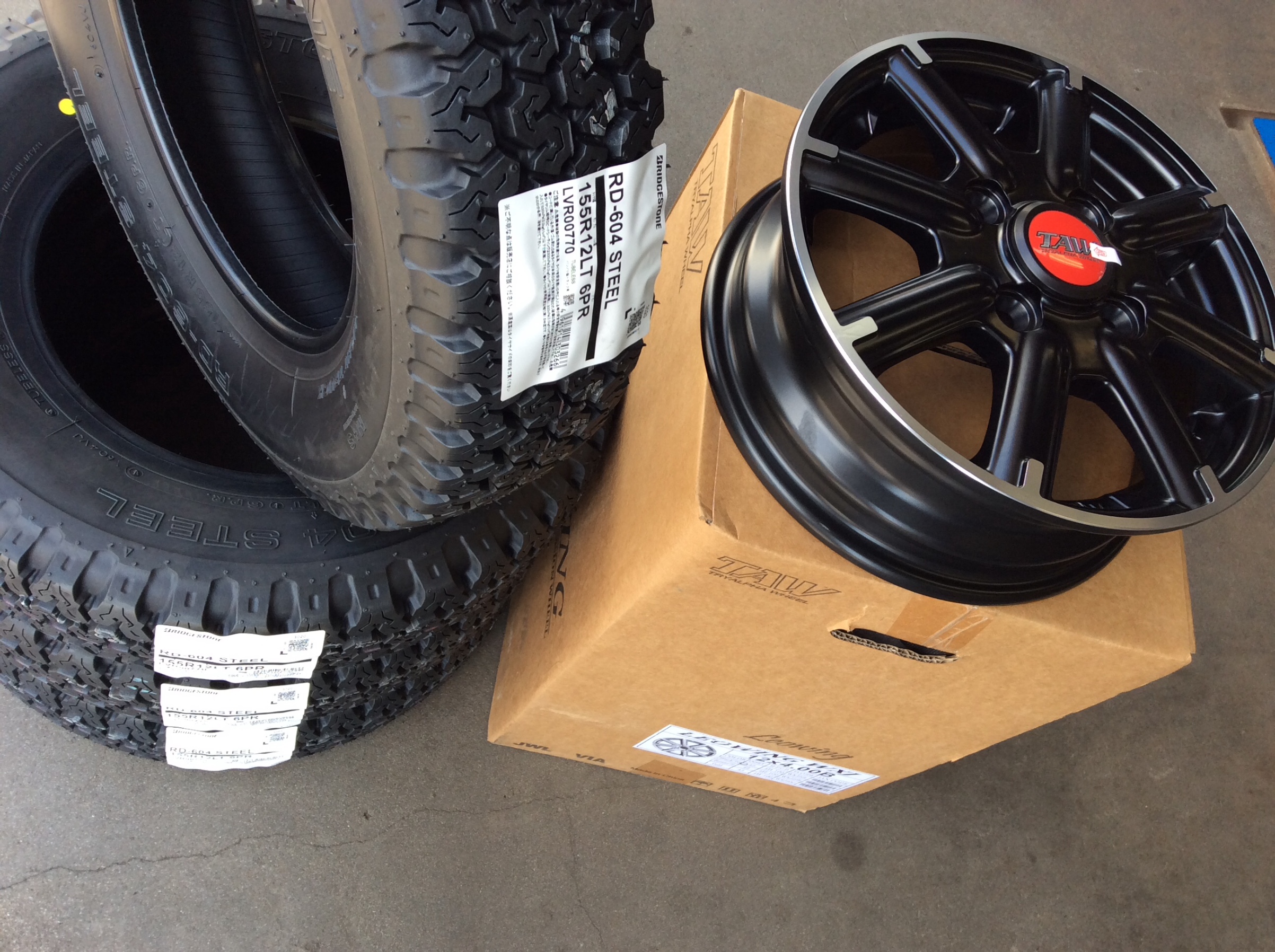 タイヤとホイールを組み込んで装着を待ちます。