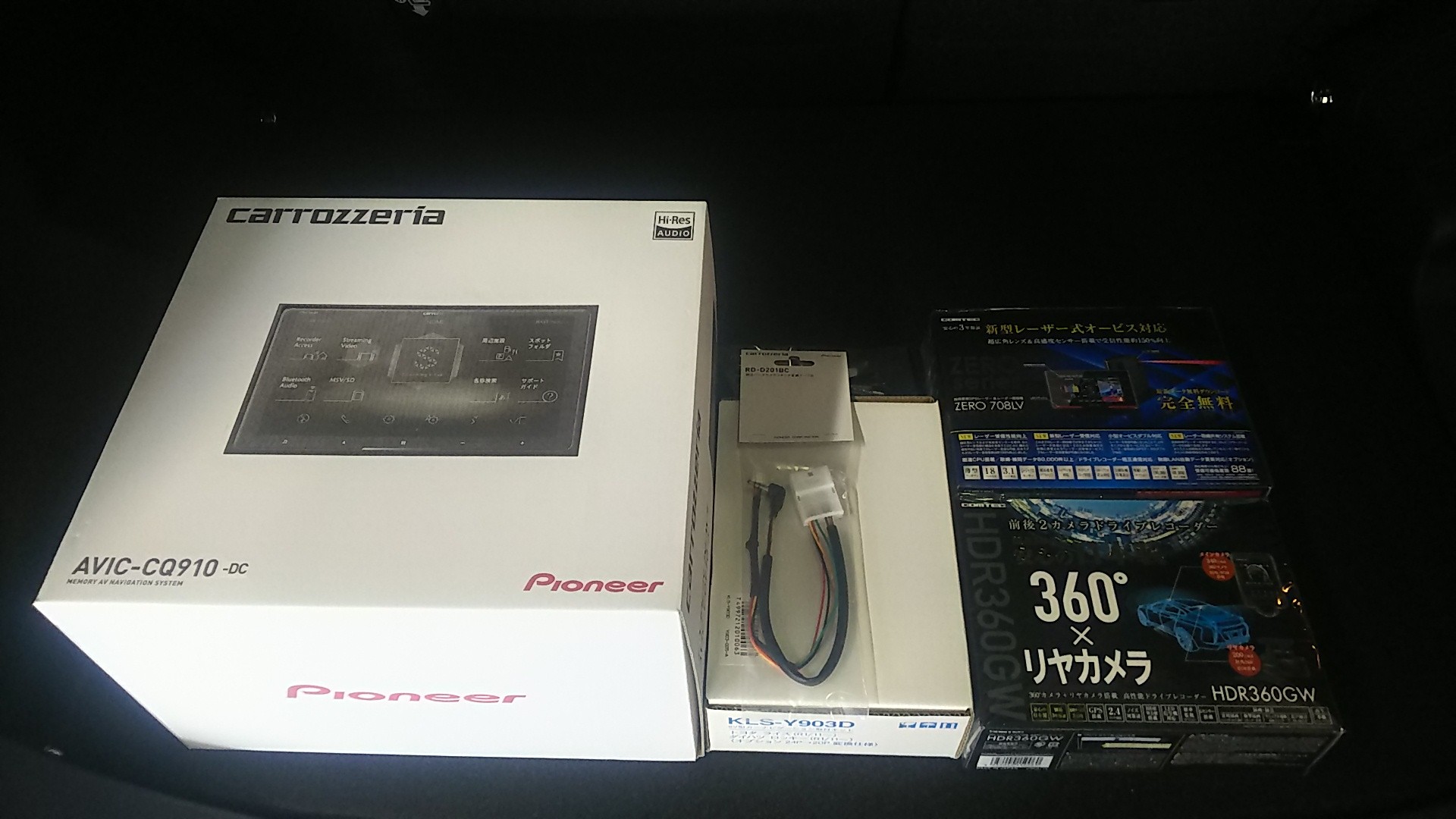 ドラレコはコムテックの360°&リヤカメラ「HDR360GW」、レーダーも同じくコムテックのレーザー対応「ZERO708LV」を装着です!