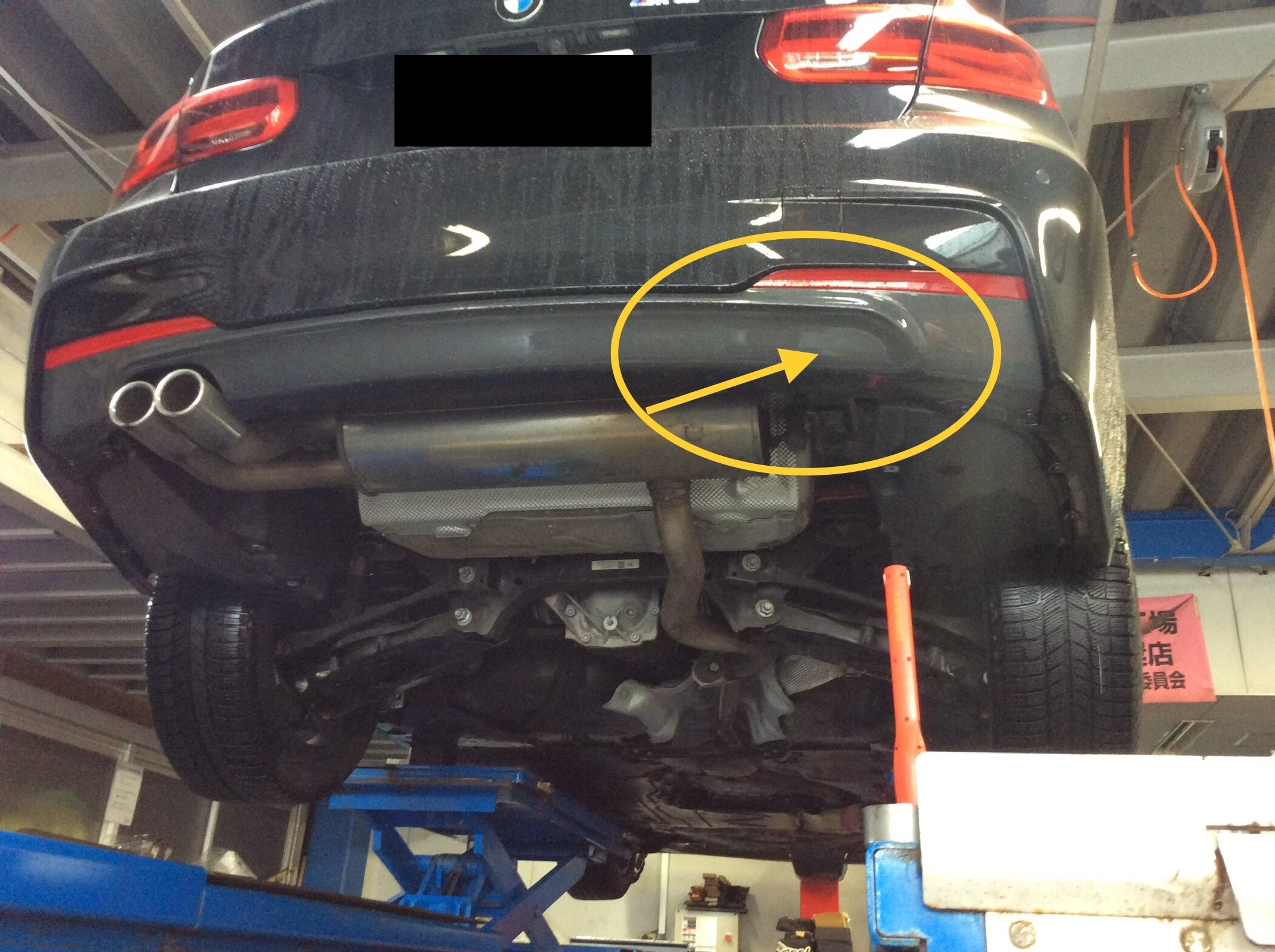 マーキングの部分から右側のマフラーが出てきます。