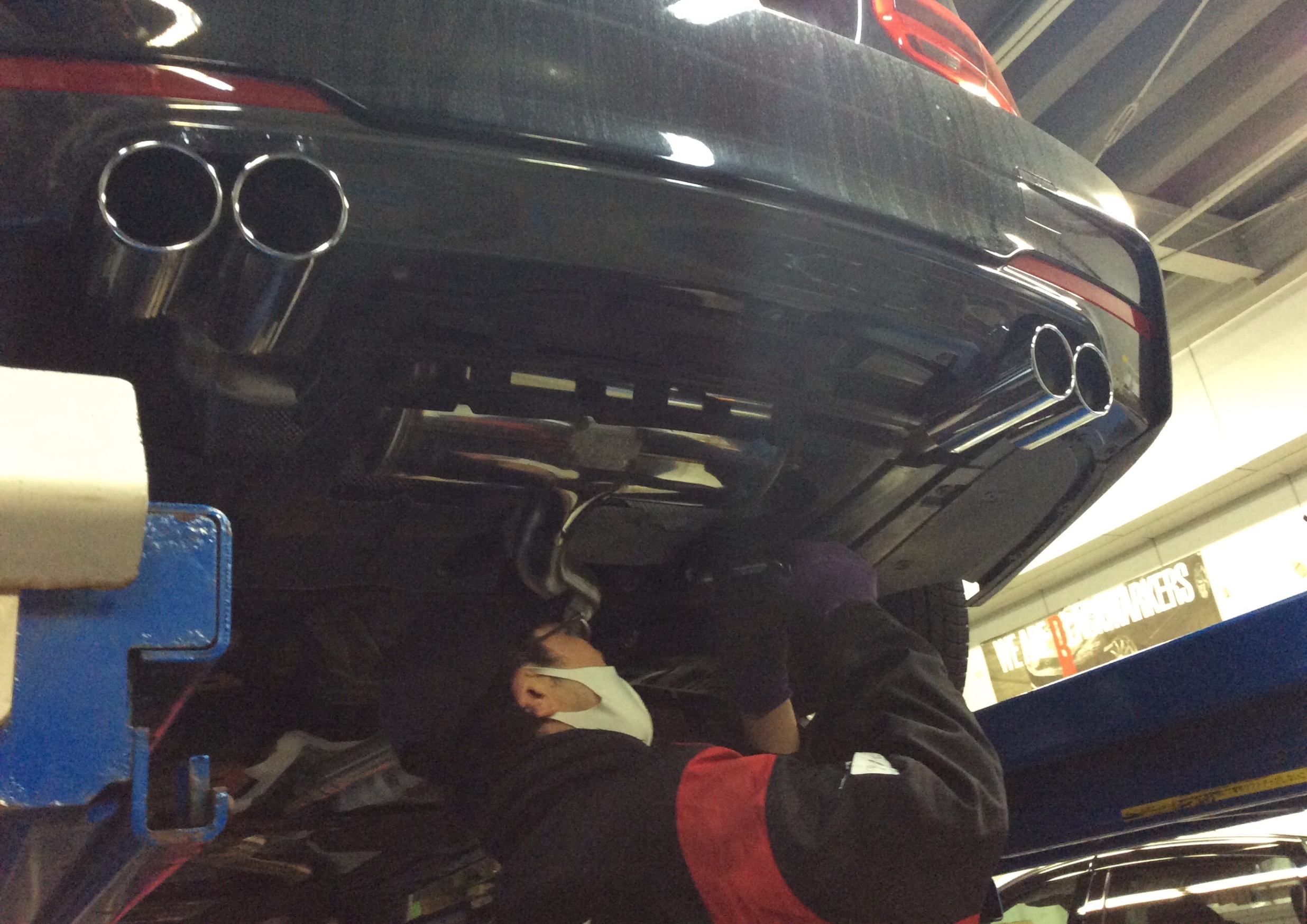 取付後の走行で異音が発生してオーナーさんはご心配をおかけしましたが、少しの加工で解決できました。