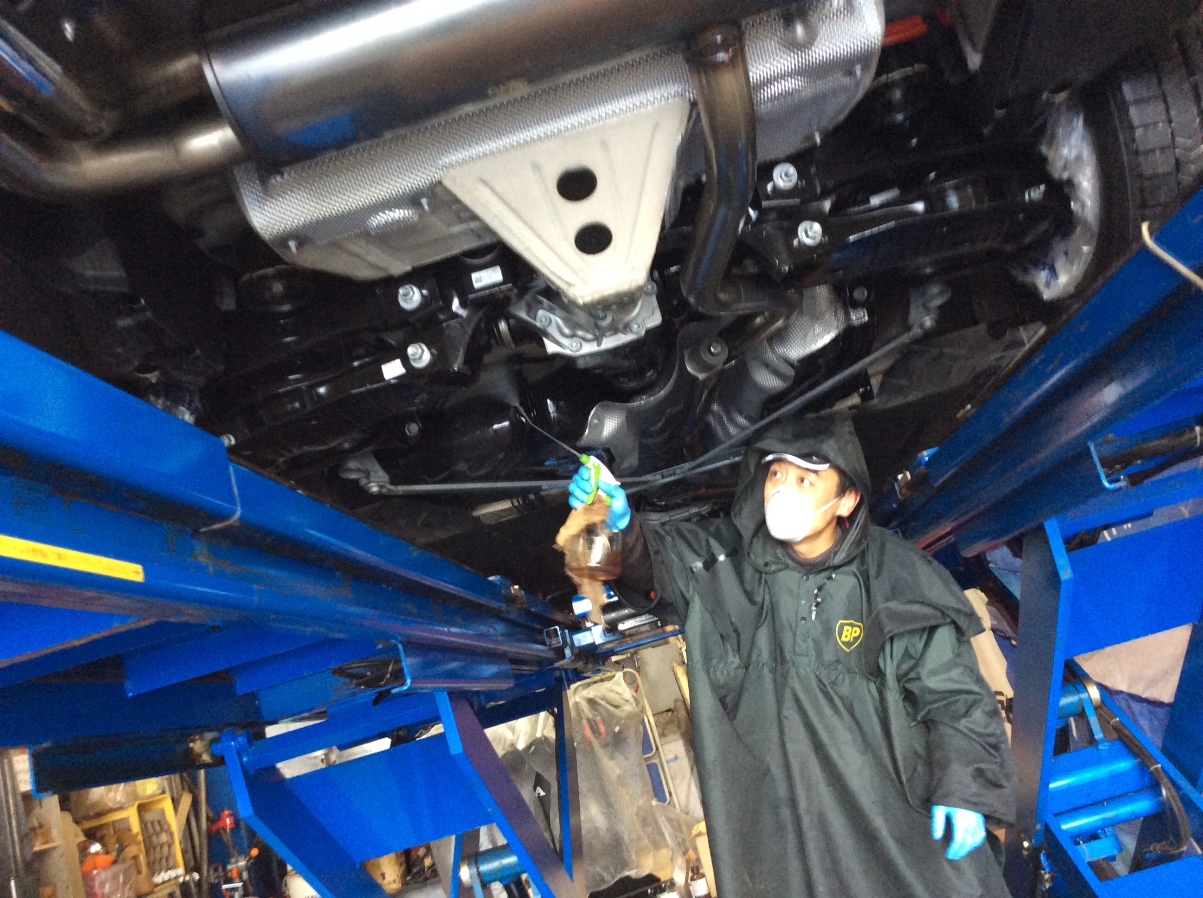 「 BMW 320d 」は距離が進まないうちに、融雪剤の影響を抑えるべく 「 防錆処理 」を。