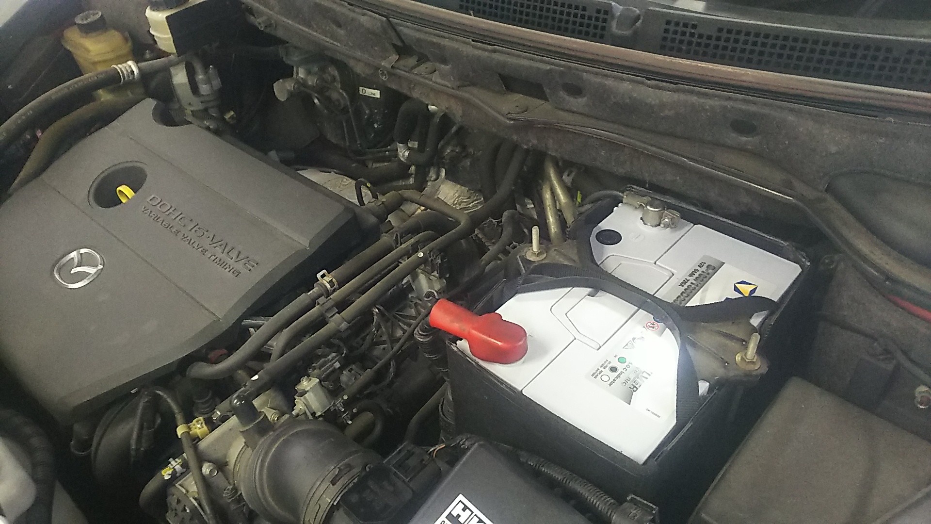 まずは、当店オススメ「VARTA」バッテリーの交換は、マツダMPVのお客様。