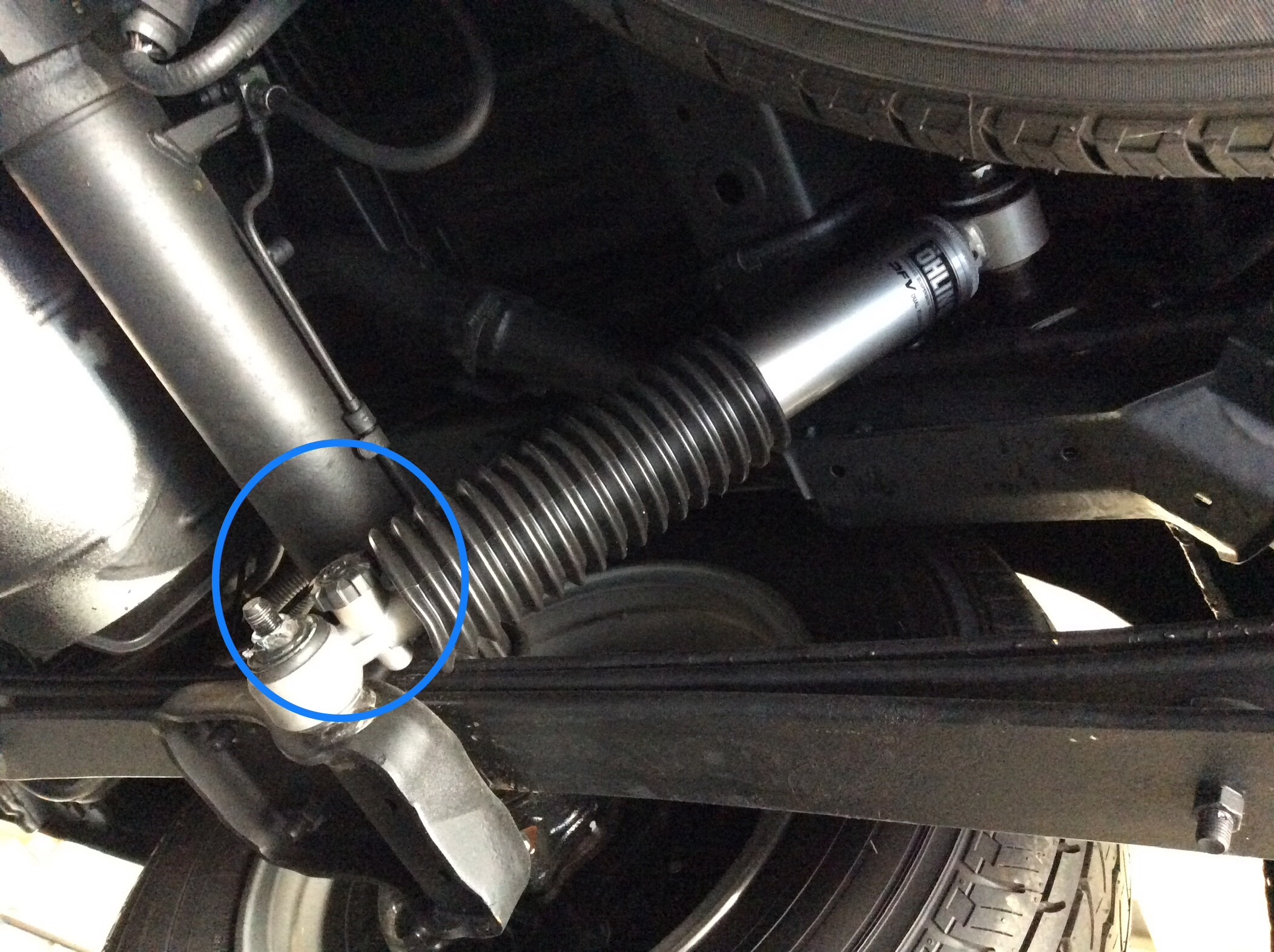 リアダンパーはタイヤの裏側からの調整です。