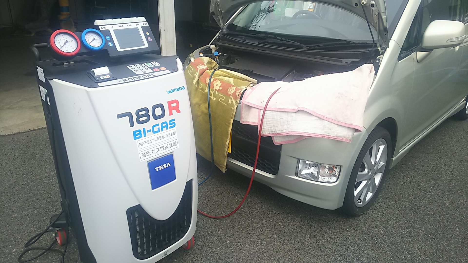 ガスを規定量キッチリと充填で、冷え冷えの車内はより快適に♪