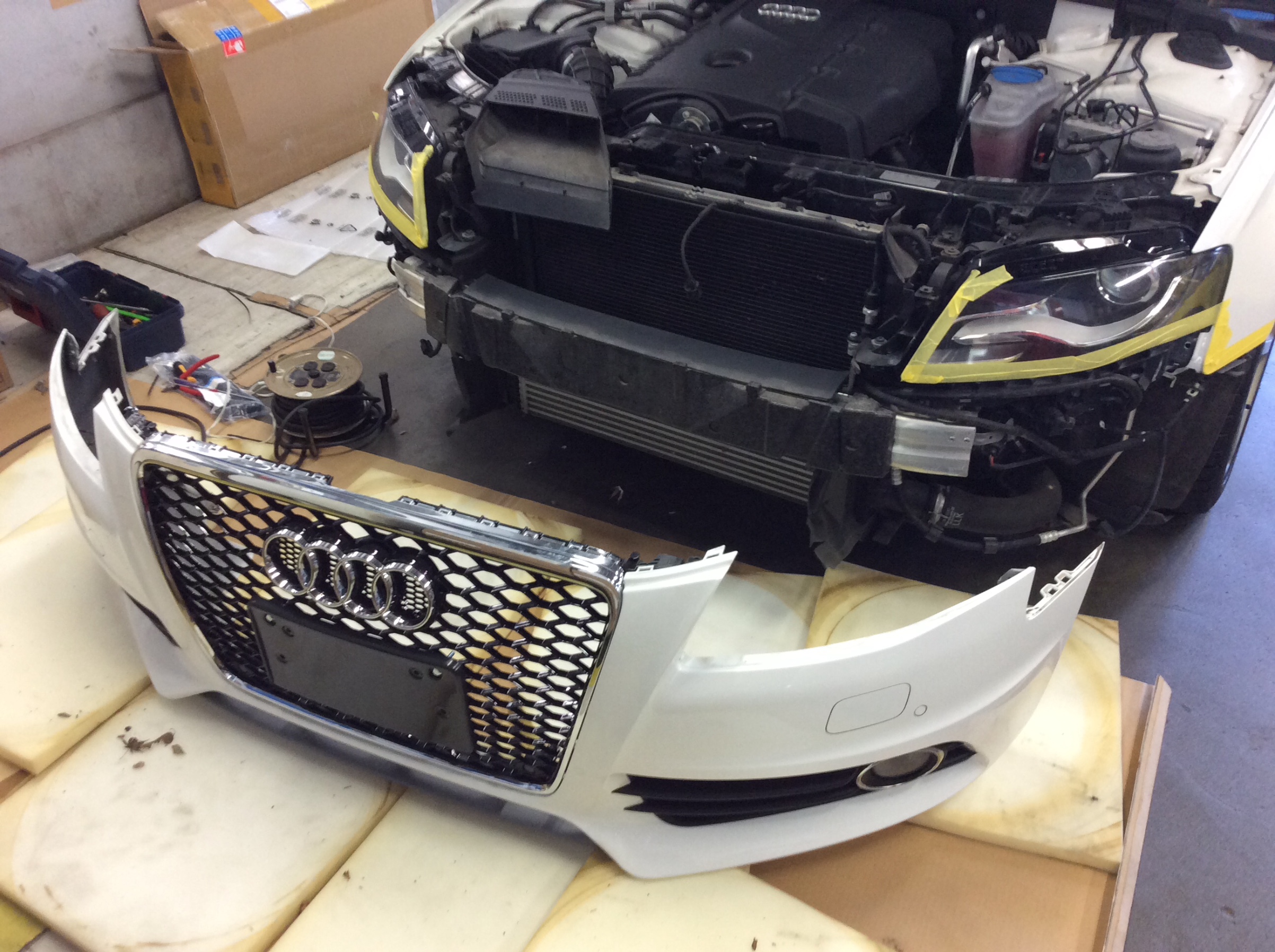 それだけでなく、バンパーの中・グリルの裏側などにある イロイロ を慎重に移設していきます。