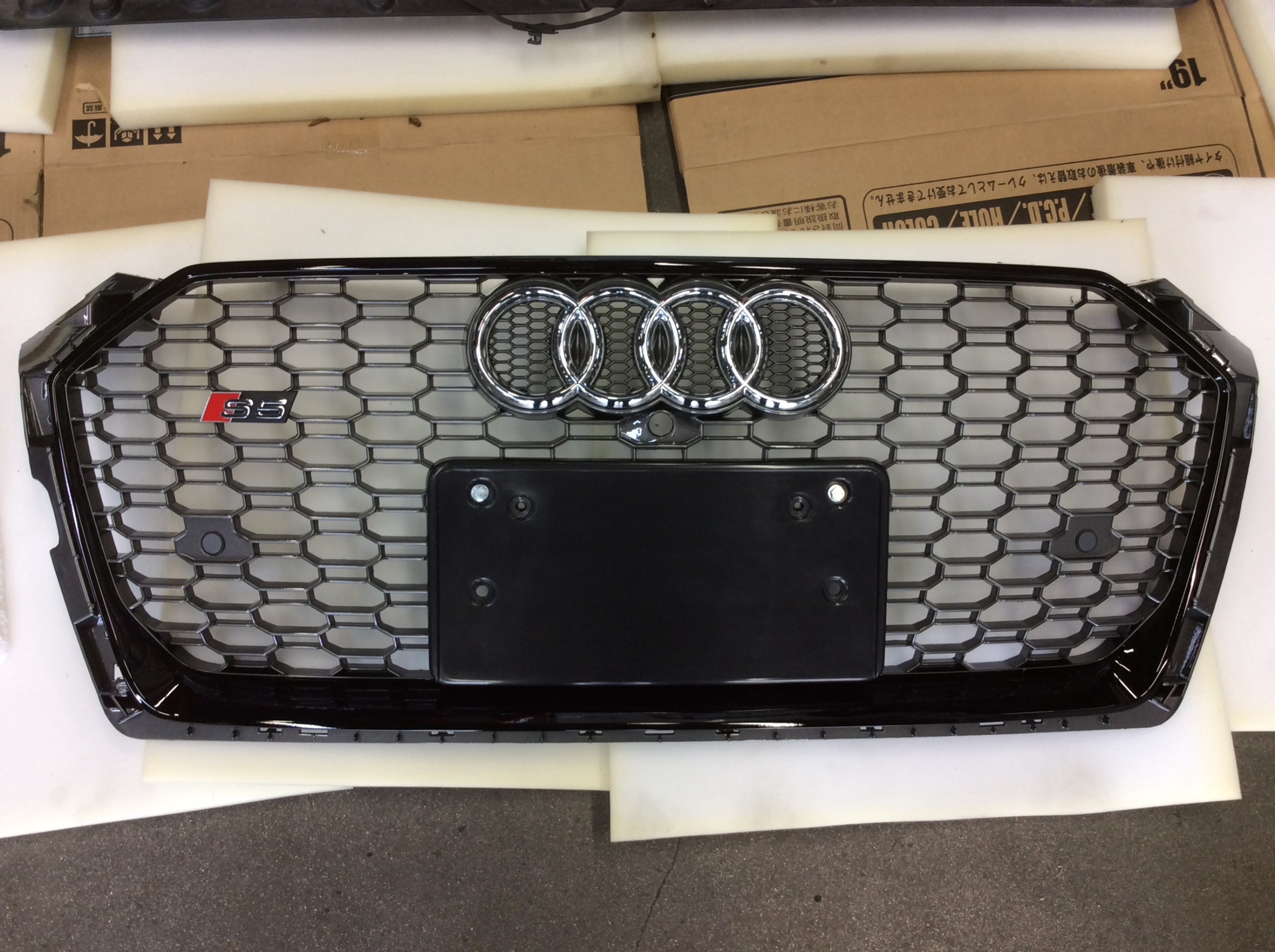 今回の交換作業は純正のサイドラインとはイメージがまったく別のハニカムメッシュグリルに交換します。