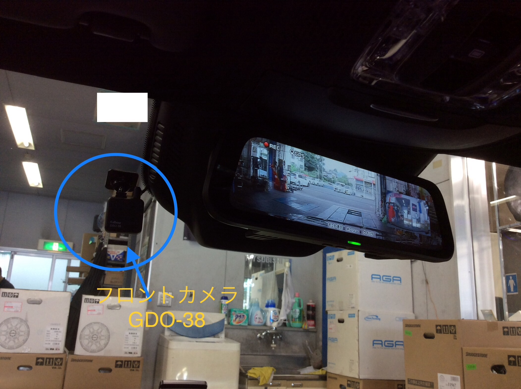 「 CELLSTAR 」のルームミラー型デジタルインナーミラー「 CS-1000SM 」と オプションフロントカメラ「 GDO-38 」をセットにして、ドライブレコーダーとして使用する方法です。
