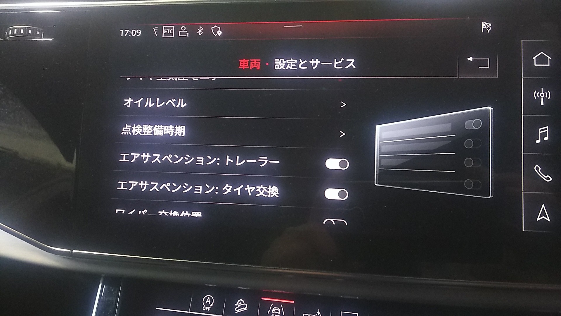 こちらも車高調整パネルを一定の操作を行い、リフトアップ可能となります。