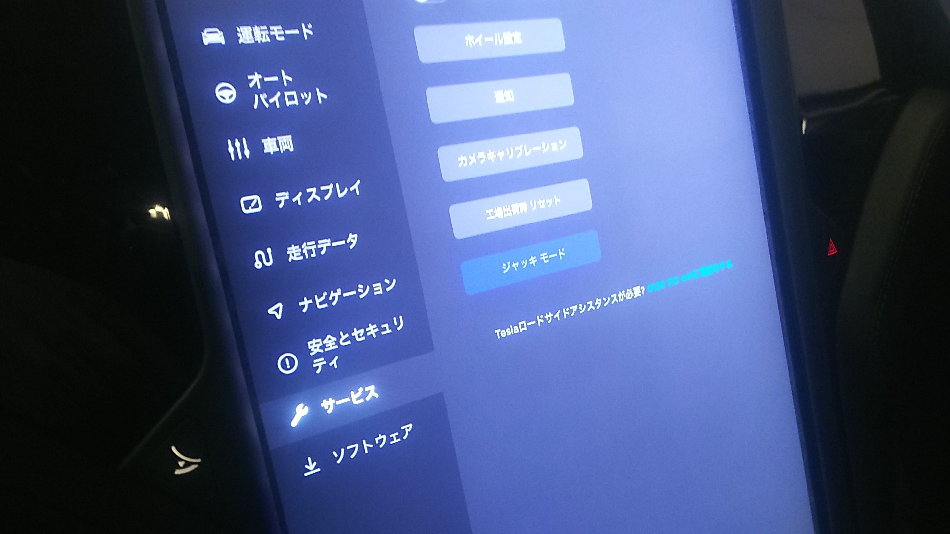 こちらも車両モニター内でジャッキモードを選択します。