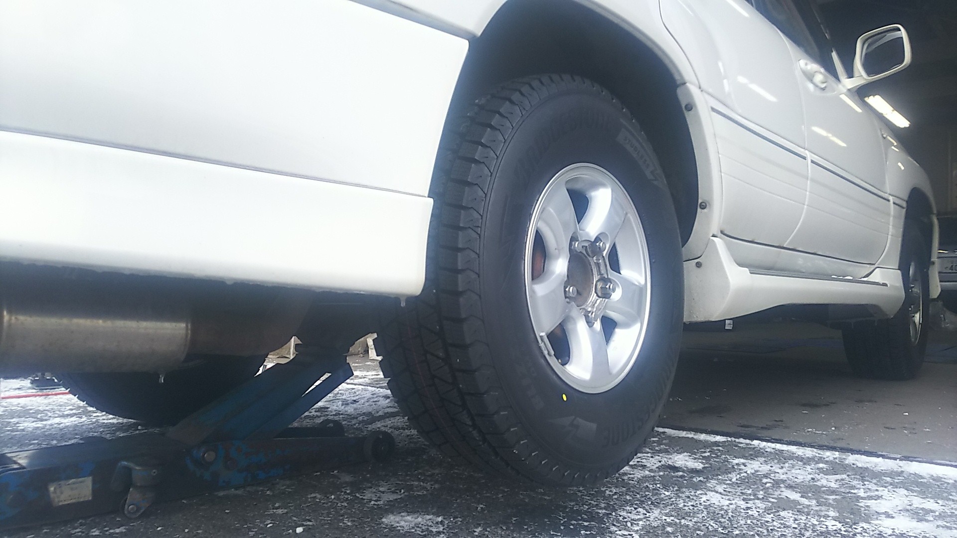 また、ランクル繋がりで「ランクル100」のお客様へスタッドレス「ブリザック DM-V3」を装着!