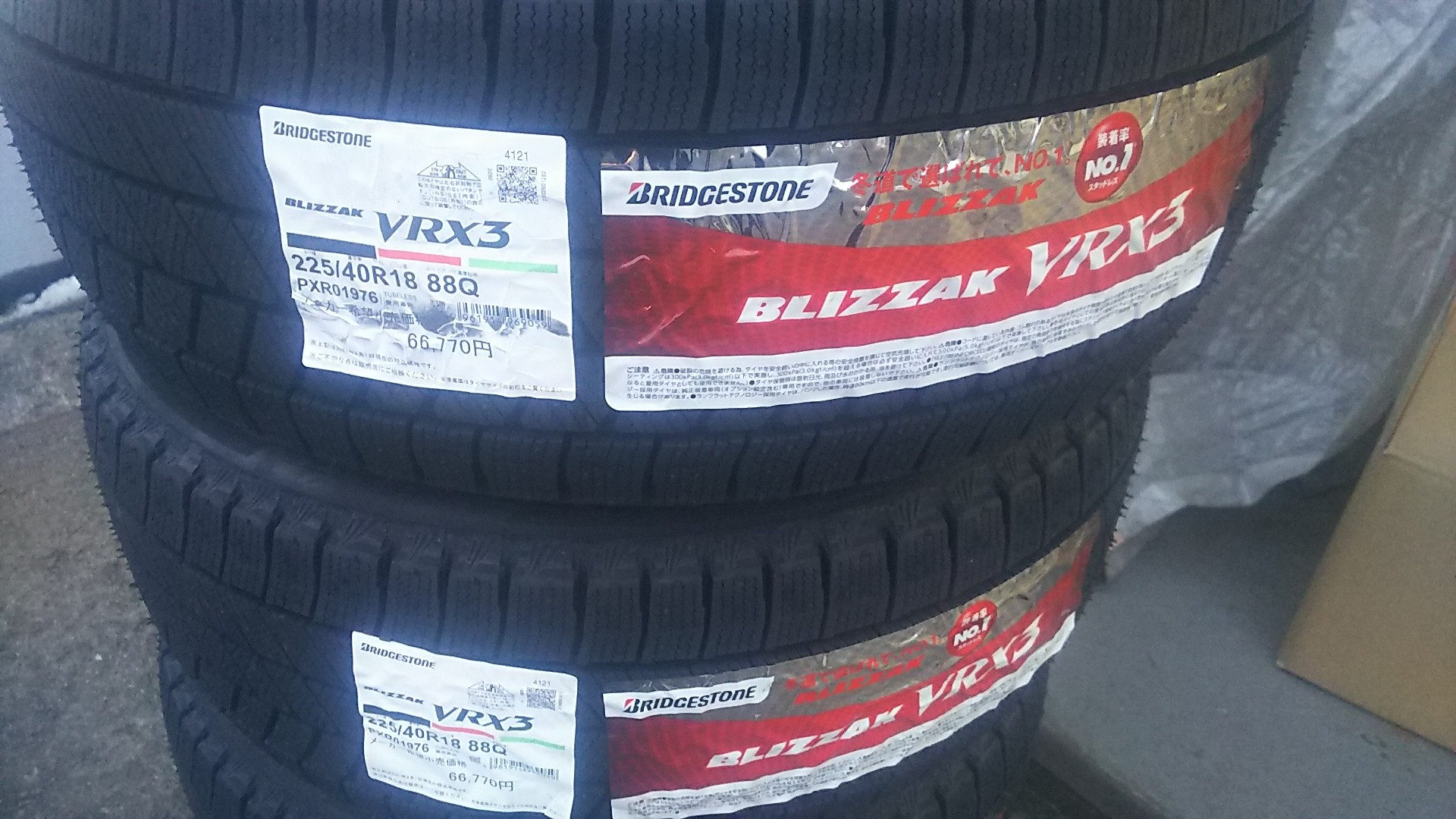 そして、こちらもご注文分のスタッドレスタイヤ「ブリザック VRX3」18インチも入荷。