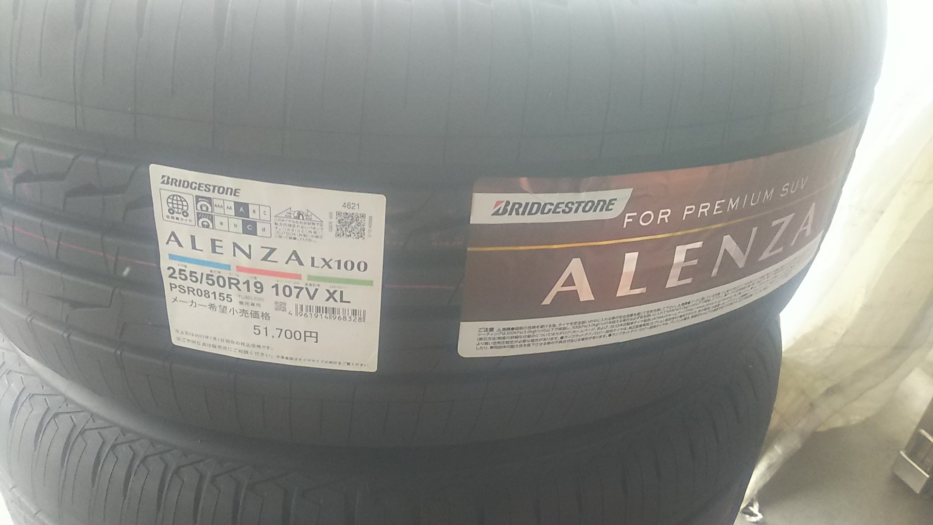 4月よりブリヂストンタイヤ「夏タイヤ/冬タイヤ」ともに値上りとなりますが、こちらは春に向けてご注文を頂戴しておりました19インチのSUV用コンフォートモデル「アレンザ LX100」が入荷!