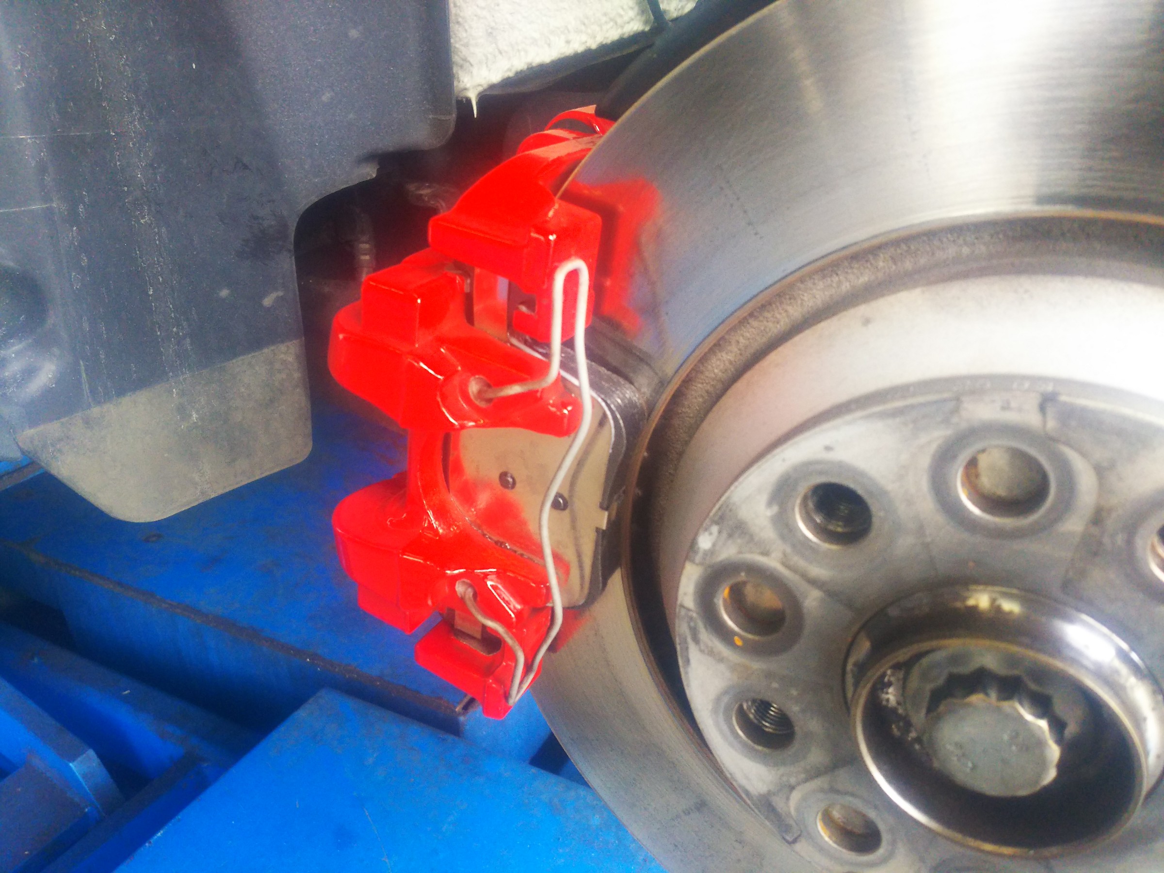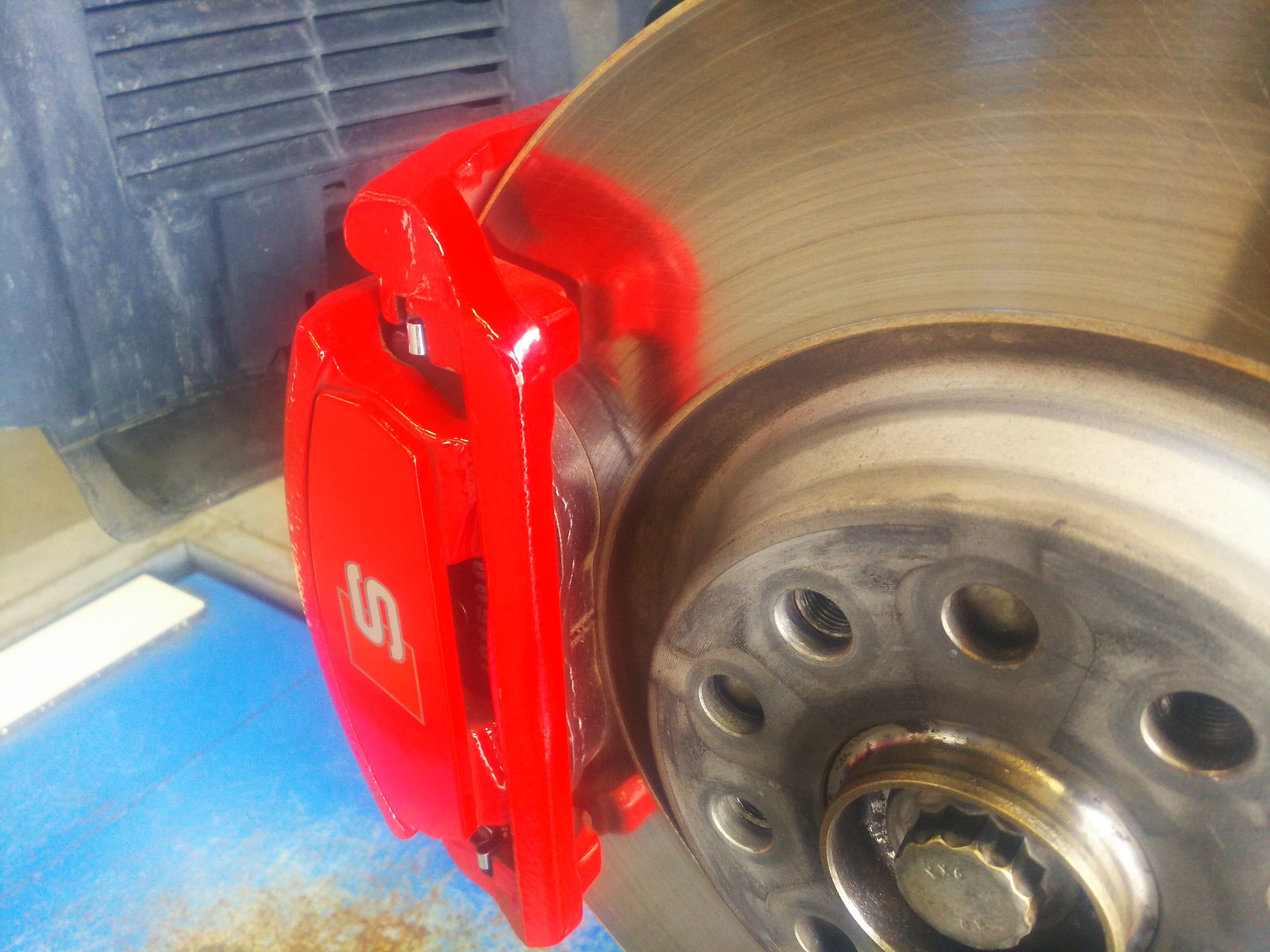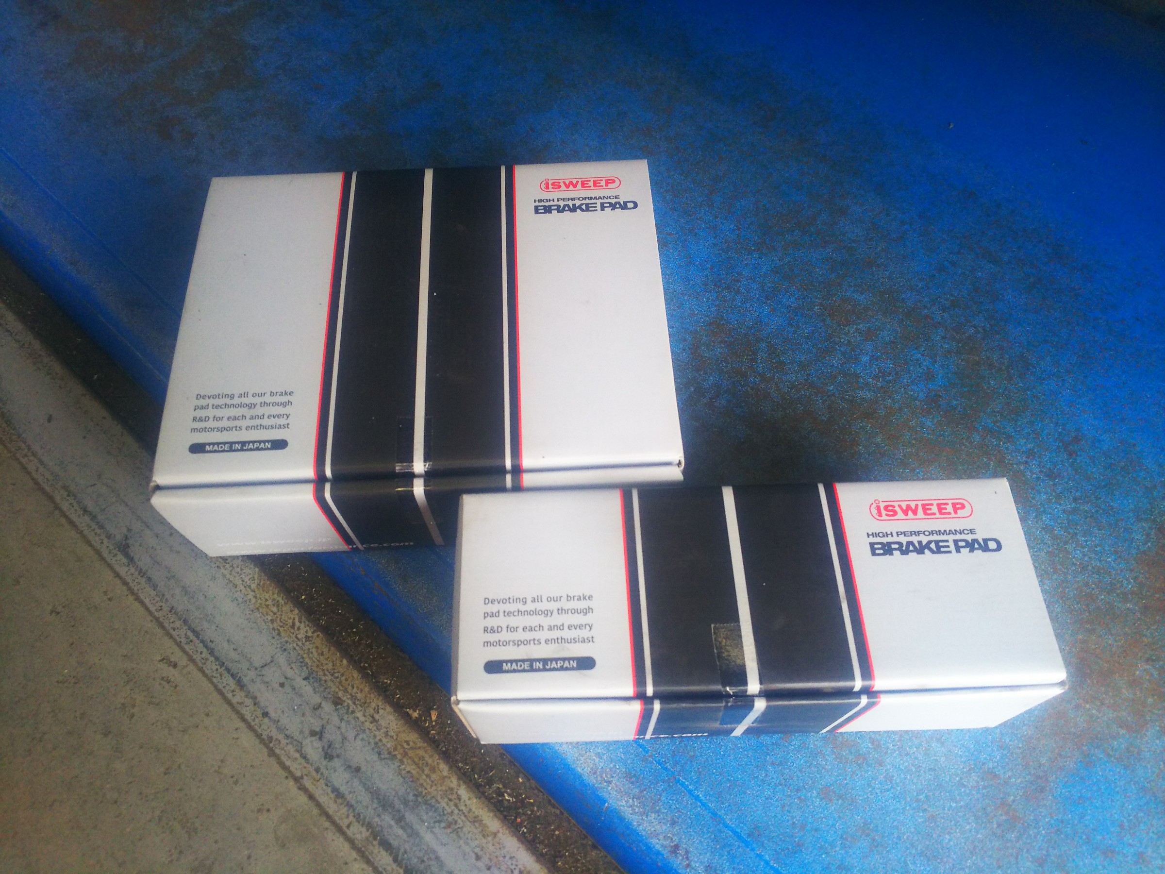 装着前に「提携認証工場」にて、VW&AUDIのスペシャリスト「iSWEEP」さんの低ダストブレーキパッドに交換も。