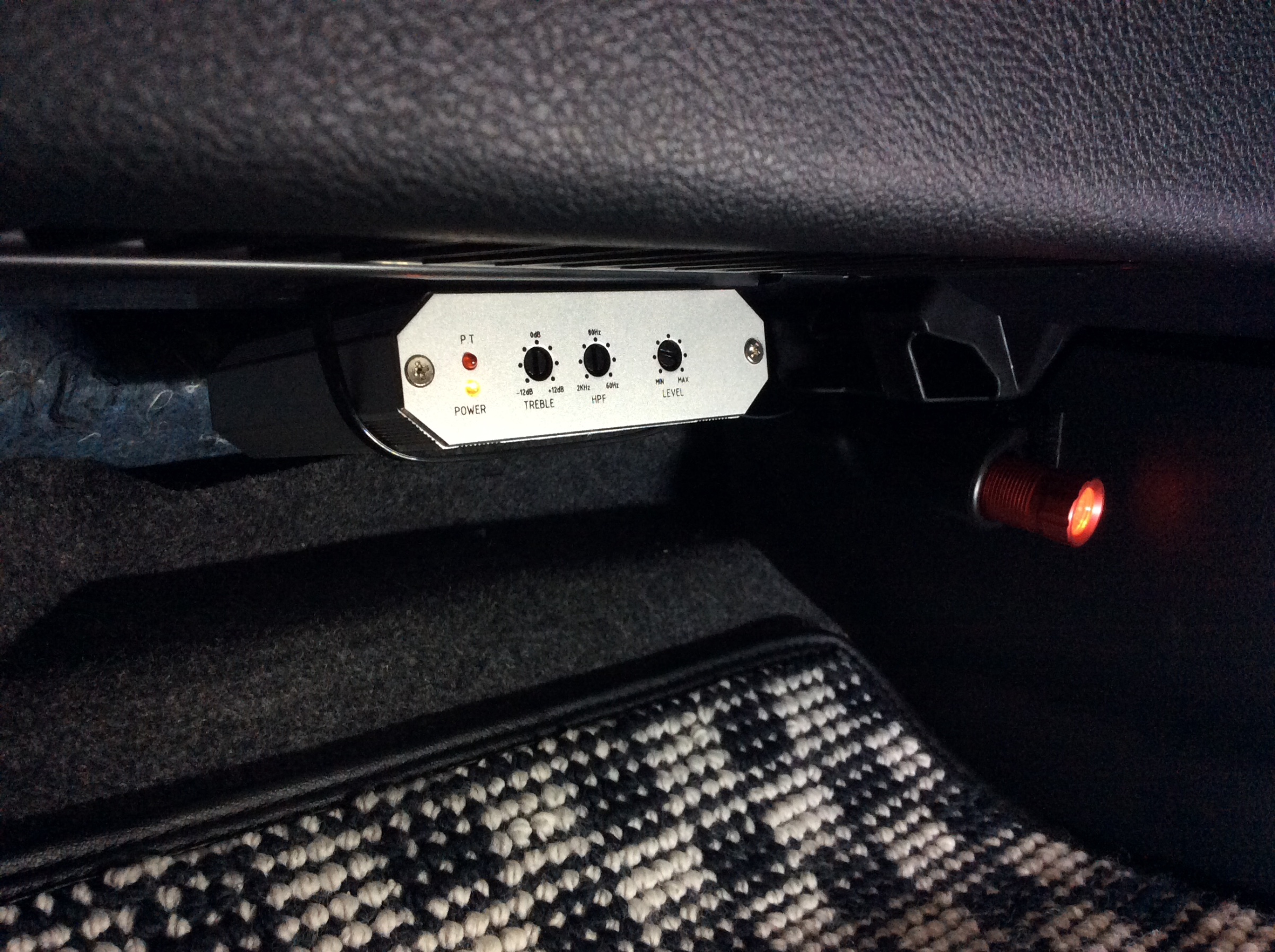 専用アンプは、グローブBOX下部へセット。