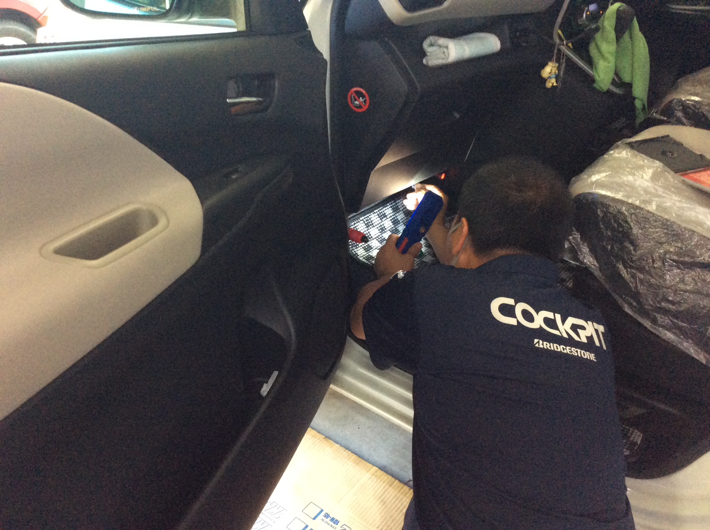 早速Aピラーカバーを取外し、装着場所を確認します。