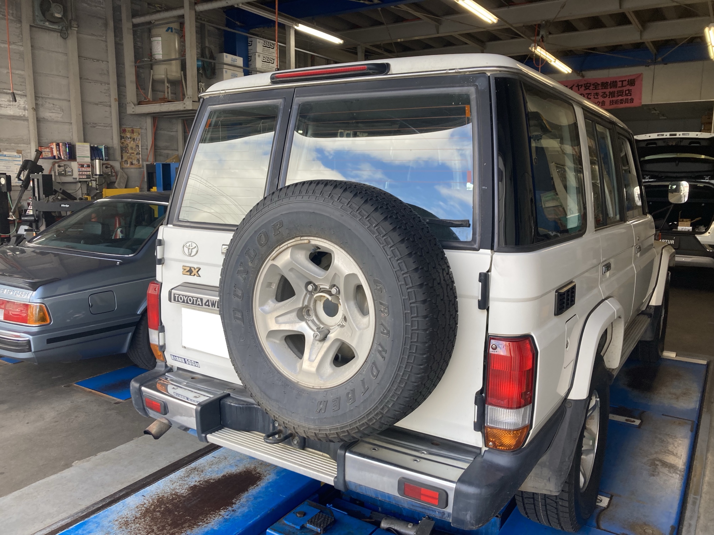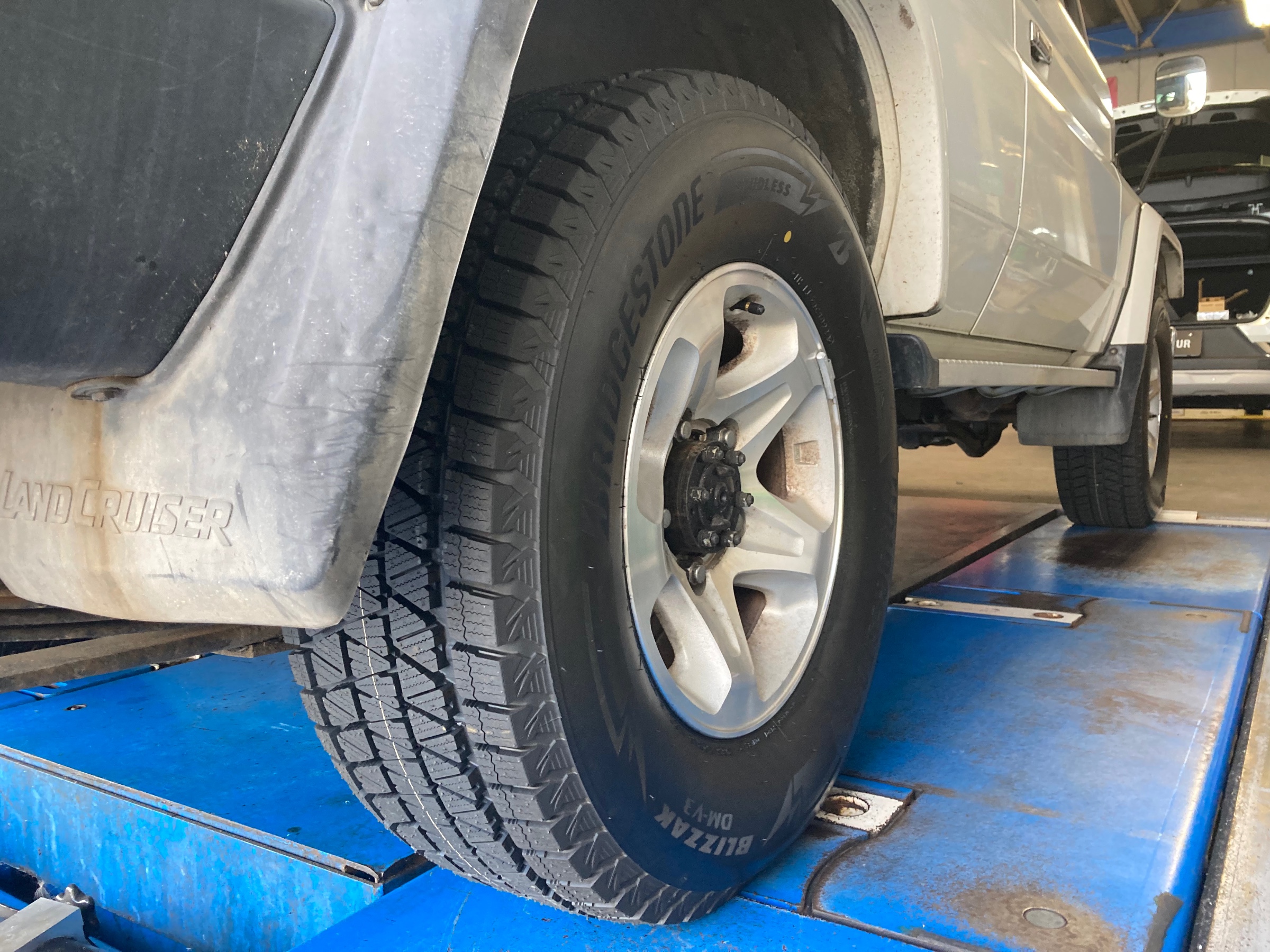ランクル70のお客様は、スタッドレスタイヤ交換にてご入庫。