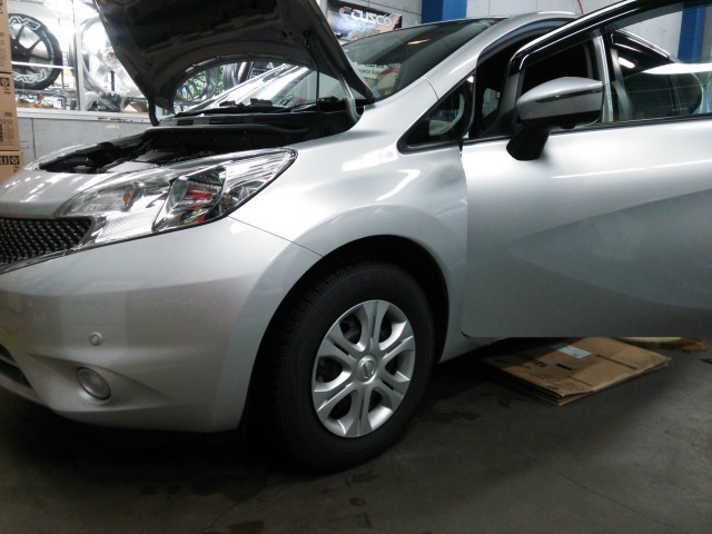 こちらは、フロントスピーカー交換などでご入庫いただきましたノートのお客様。