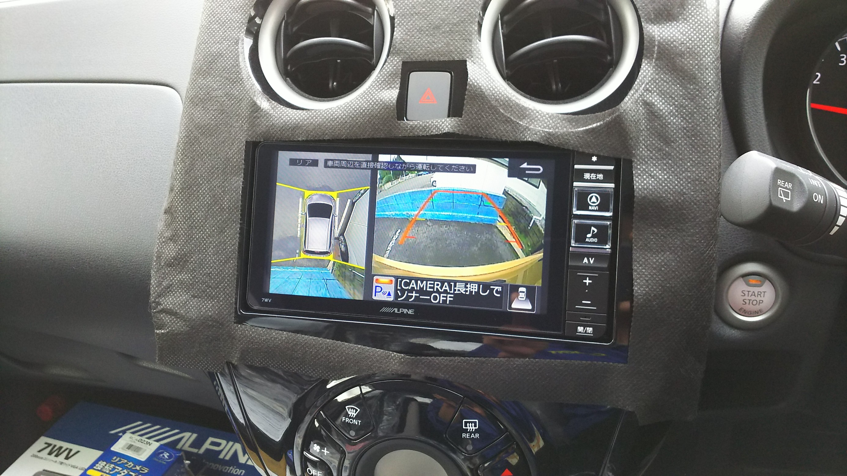 ナビは、アルパイン7WVを。アラウンドビューもアダプターで入力し、ETCも装着です。