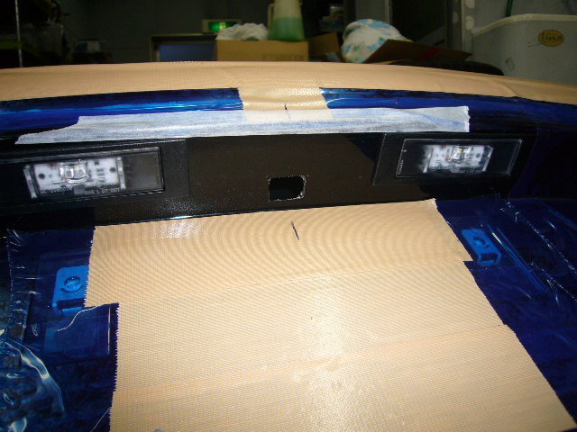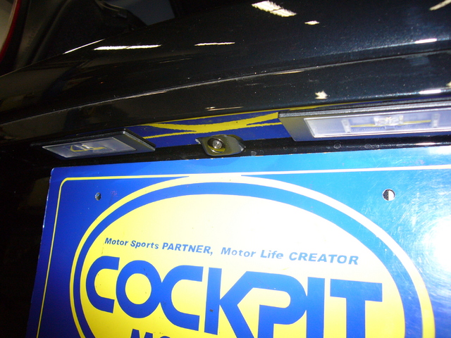 まずはリヤバンパーを取り外し、入念にカメラ位置合わせ。その後穴あけ加工にて装着です。