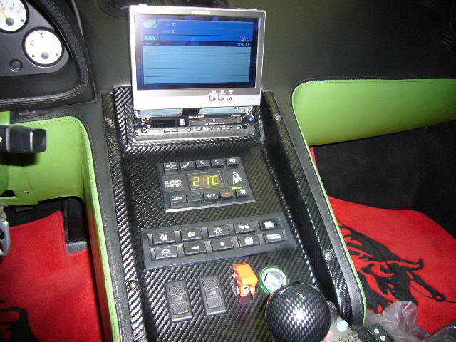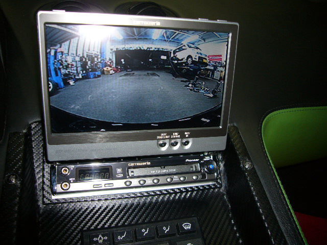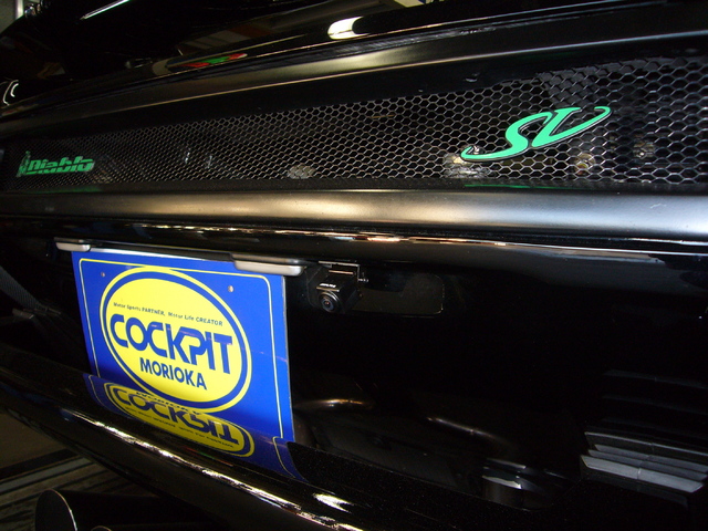 リヤカメラはライセンスランプ脇に貼り付け装着。V12エンジンの熱を考慮しながら、室内まで配線でしたのでチョット大変でした(-_-;)