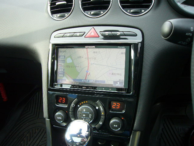 オーディオレス仕様のお車で、308専用KITにてカロッツェリア楽ナビを装着させていただきました。