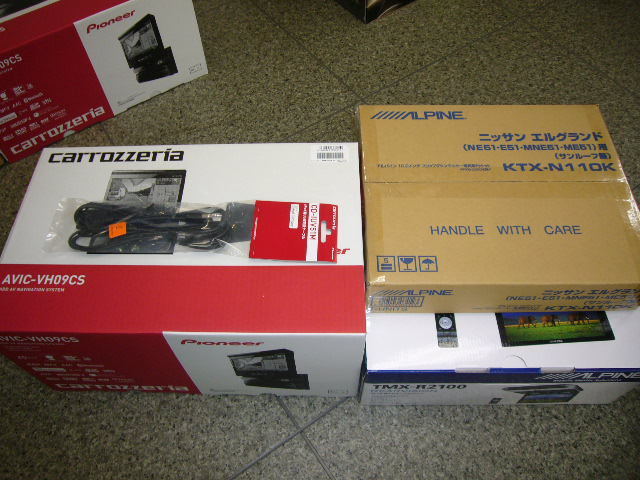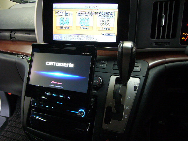 カロッツェリアのフラッグシップ「サイバーナビ」の装着と、アルパイン・フリップダウンモニターをセットさせていただきました。