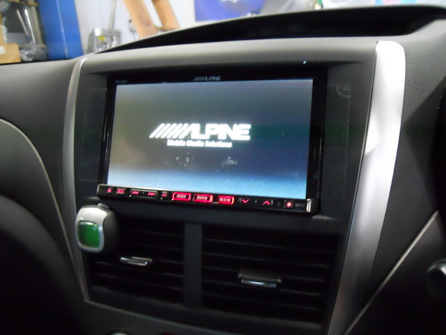 ナビは人気のアルパインX007、同じくアルパイン製リヤカメラは埋め込み加工で装着です。