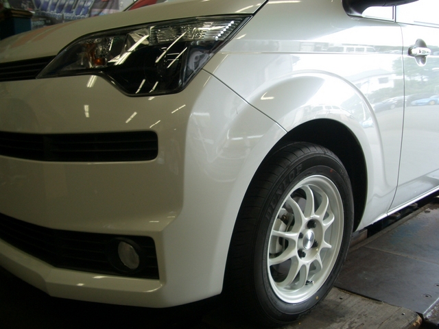 同時に、ホイールをコンパクトカー向けスポーツエコフォルム!「CRS102」のホワイトにチェンジ!