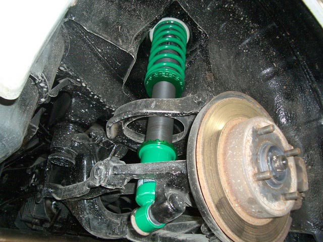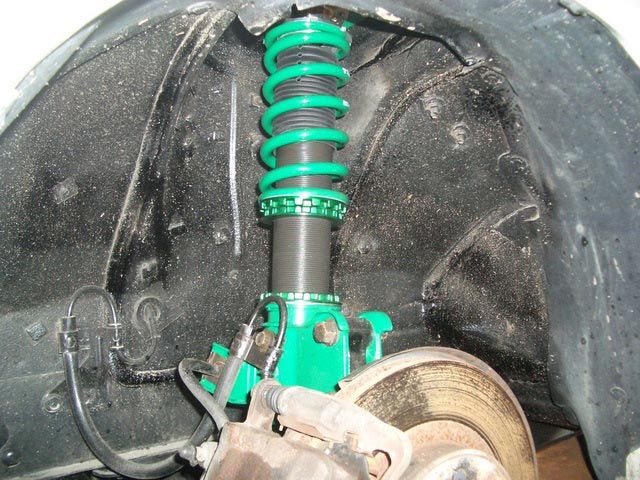 すでに車高調が装着済みのお車、かなりお疲れ気味でしたので、2セット目の車高調装着などでご入庫です。