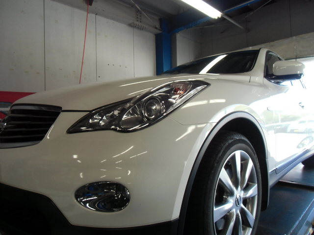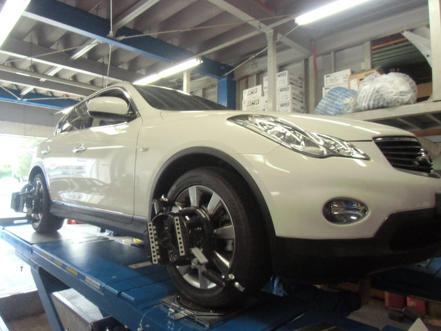 こちらもタイヤ交換繁忙期以前の作業となりますが、スカイラインのプレミアムSUV、クロスオーバーのお客様です。