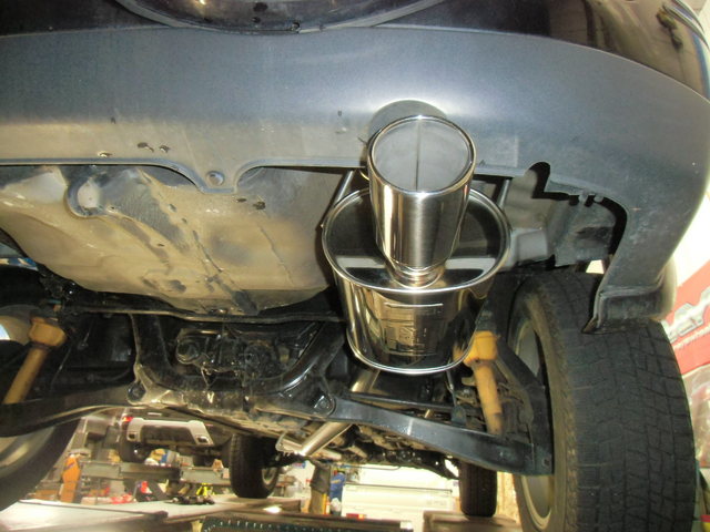 純正センターパイプの腐食&穴により交換が必要な状態で、どうせならとフジツボ製4×4用「レガリス4」に交換させていただきました!