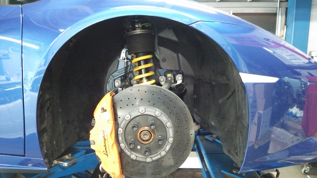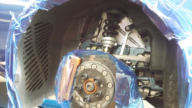 作業の際、前後ともインナーフェンダー取り外しが必要ですが、フェラーリ458など同様、硬いです!