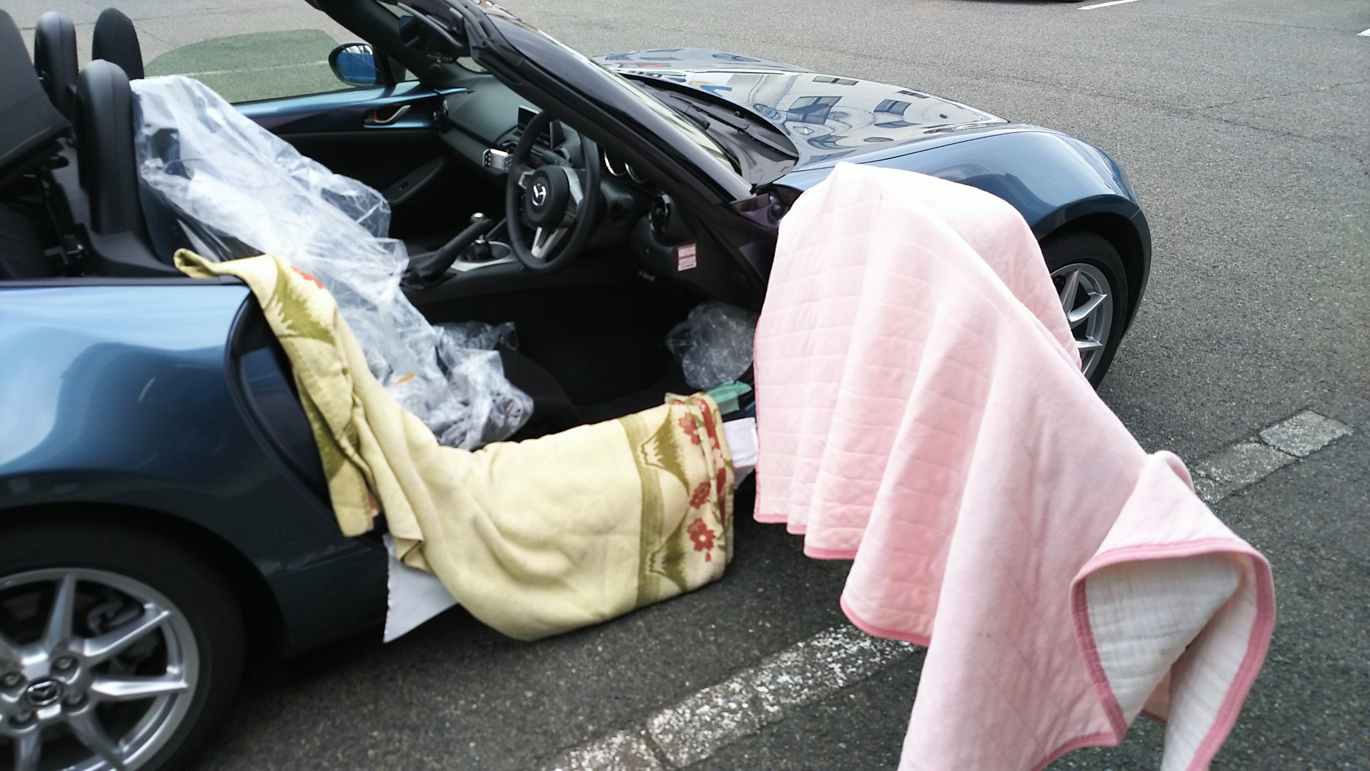 屋根を開けさせていただき、しっかり養生しノーマルシートを取外し。