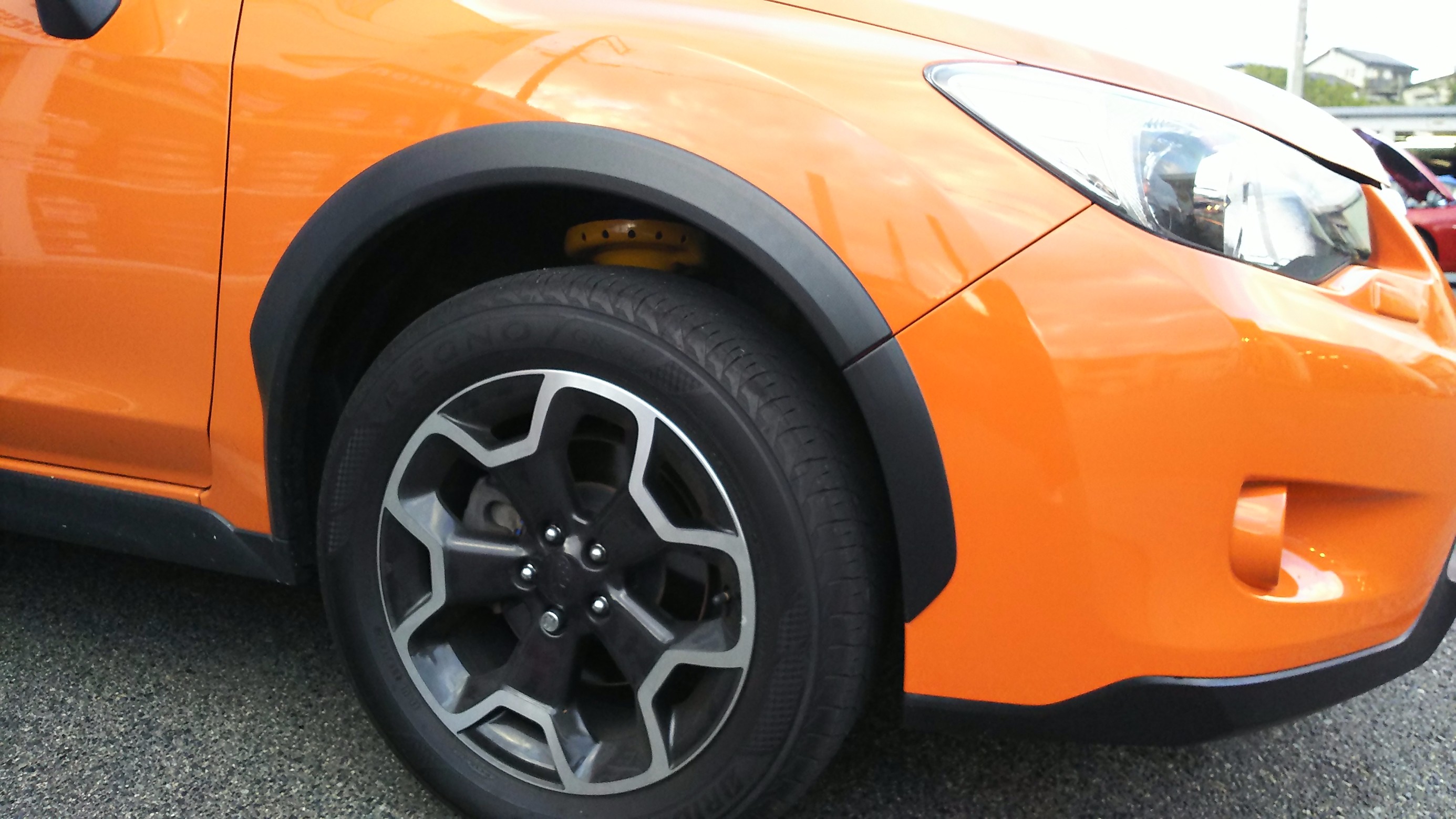 ホイールハウスから覗くイエローのダンパー、スバル車ではお馴染みの光景ですね♪