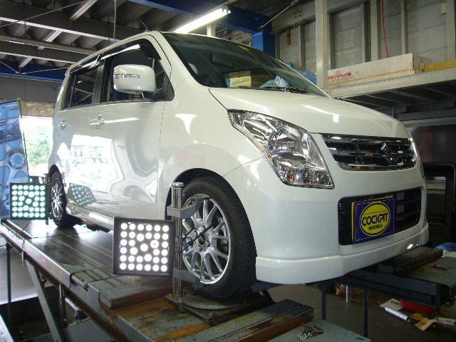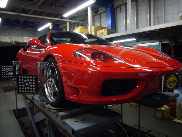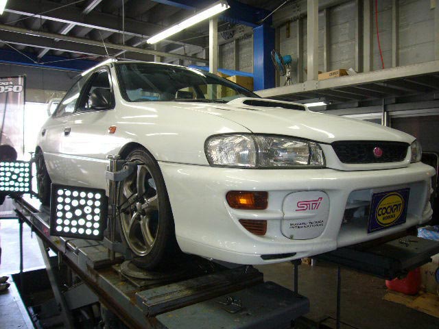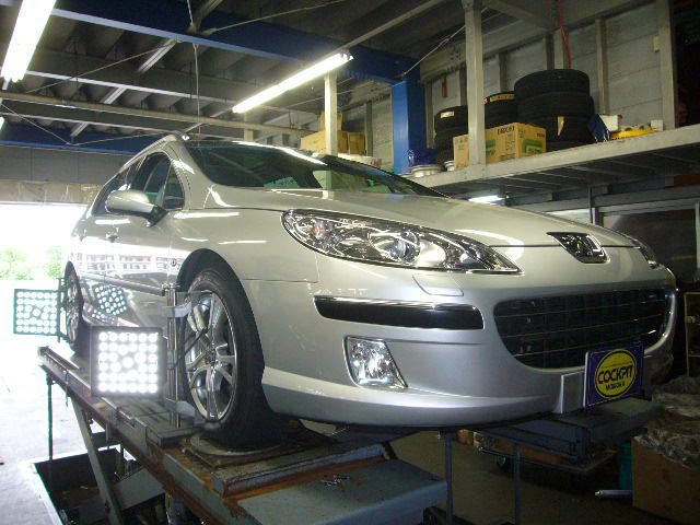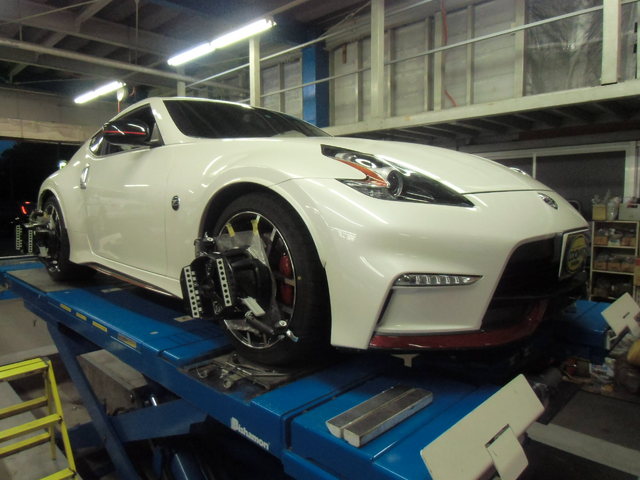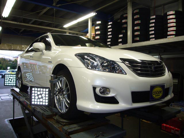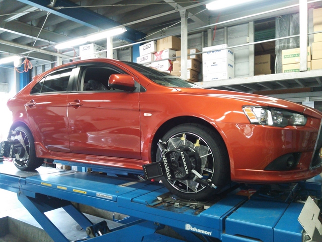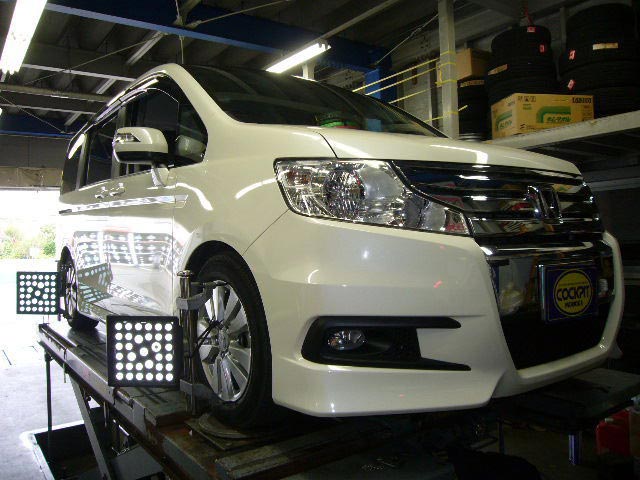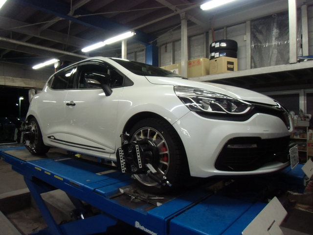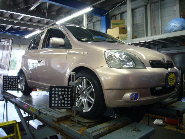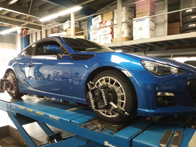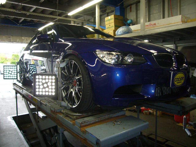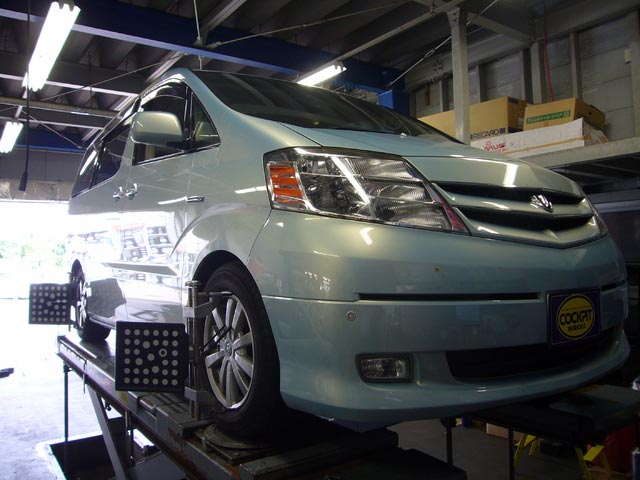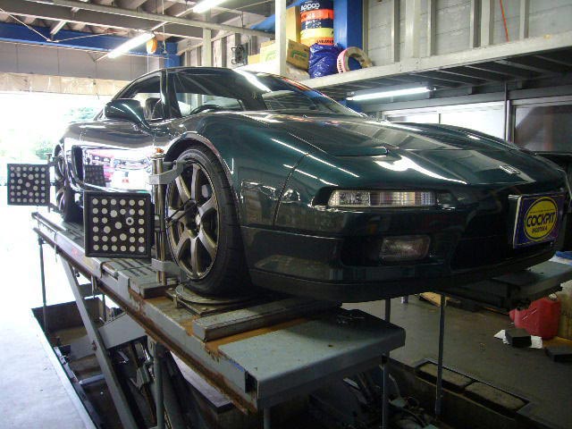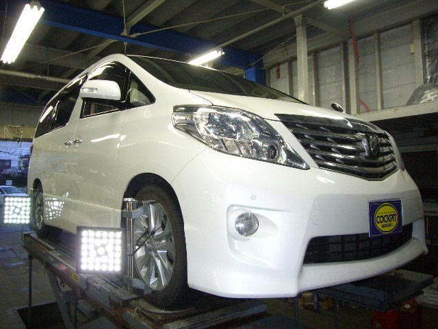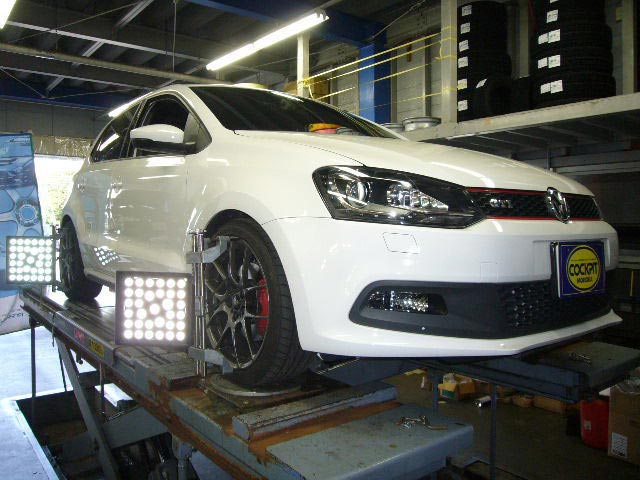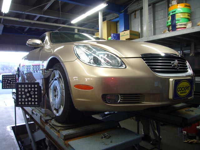 まず、はじめに車輌の状態(ハブベアリング、ボールジョイント類など全般)の点検後、問題がなければ調整作業にはいります。