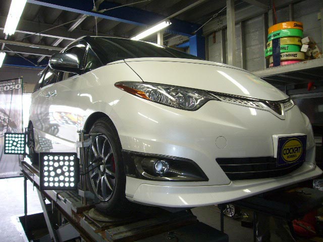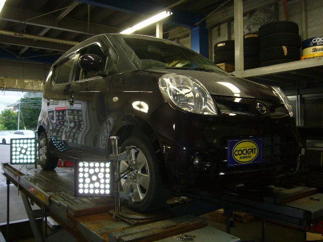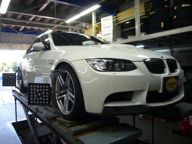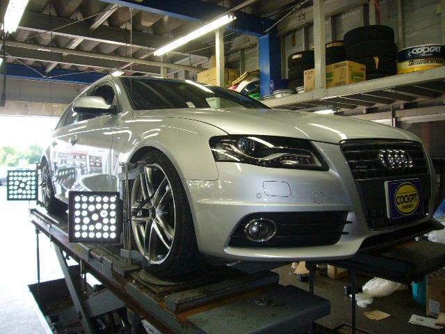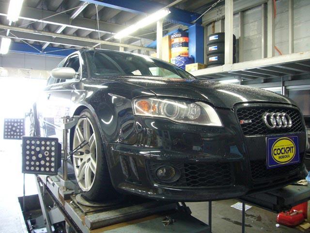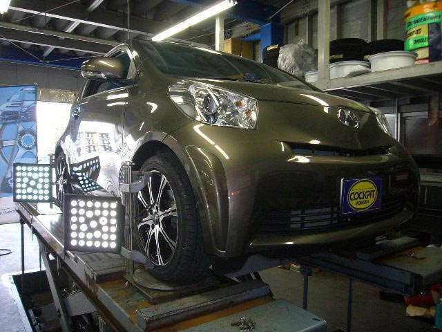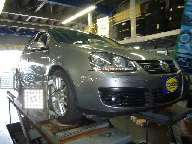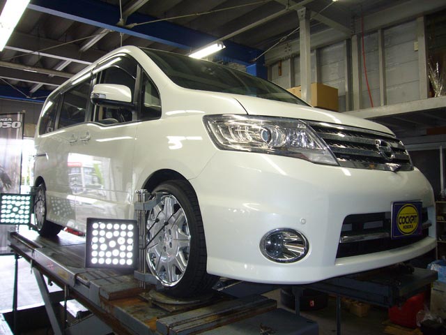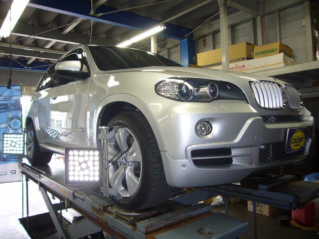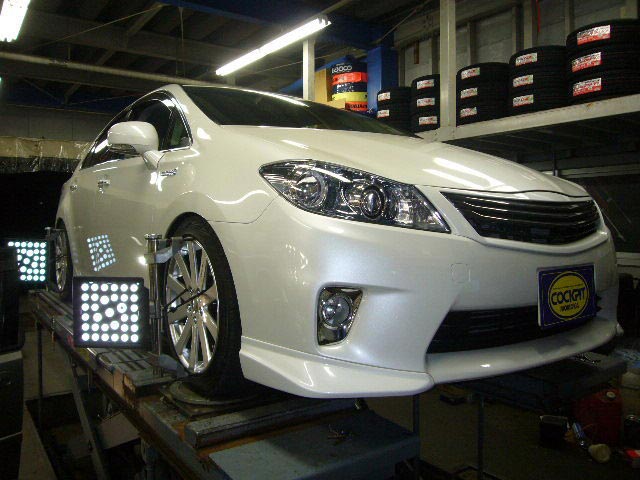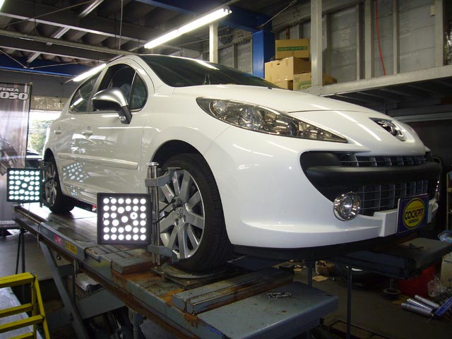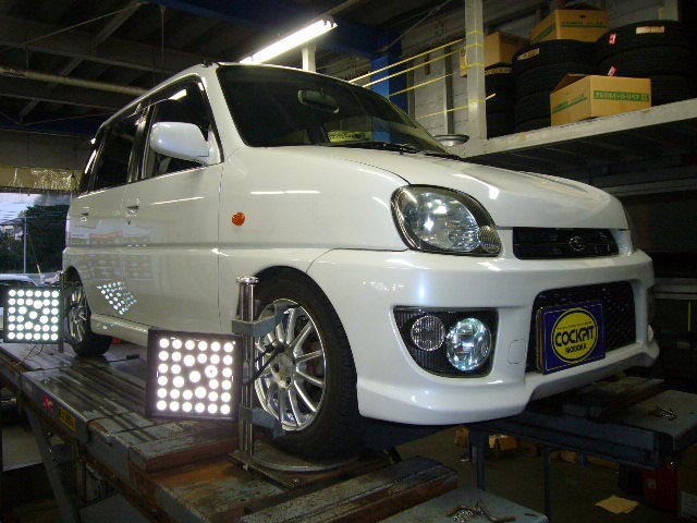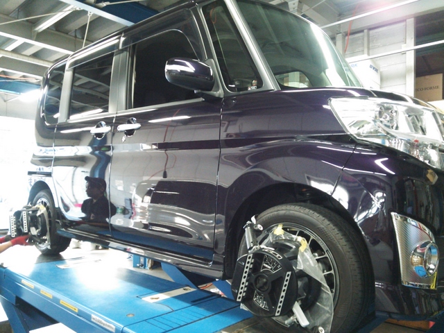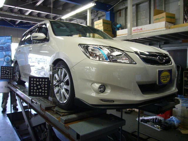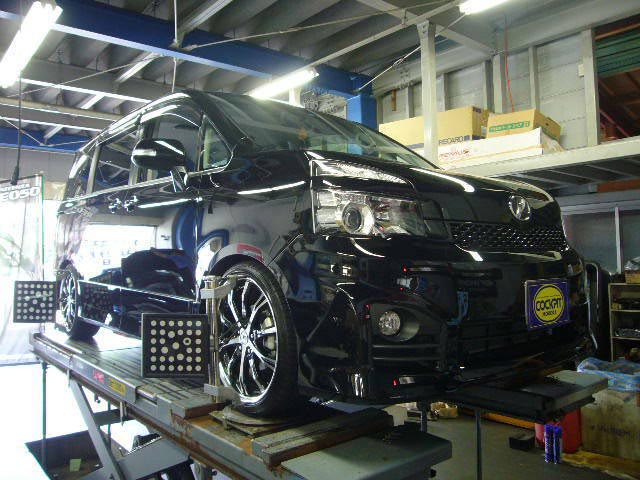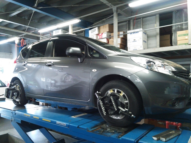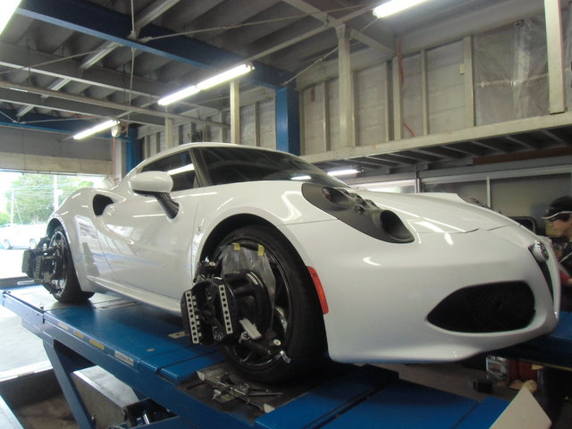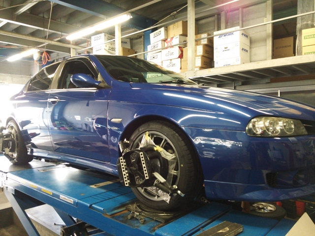 まず、はじめに車輌の状態(ハブベアリング、ボールジョイント類など全般)の点検後、問題がなければ調整作業にはいります。