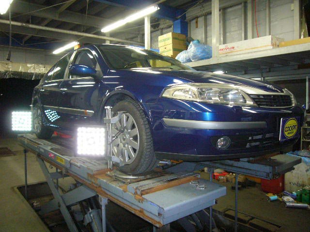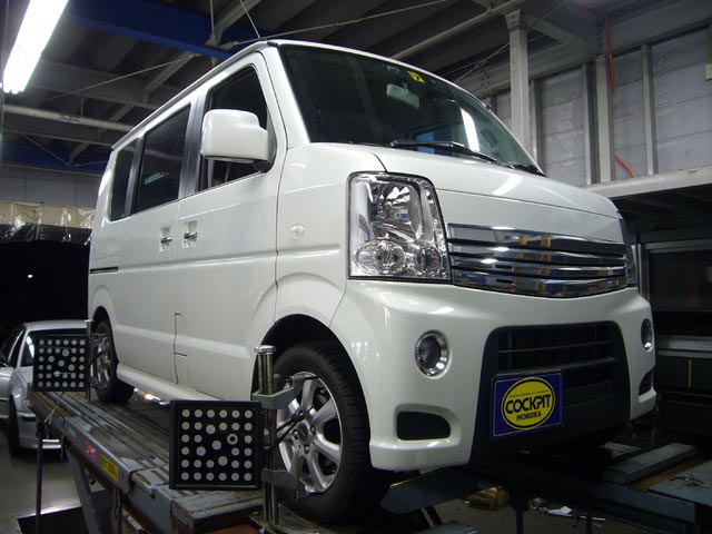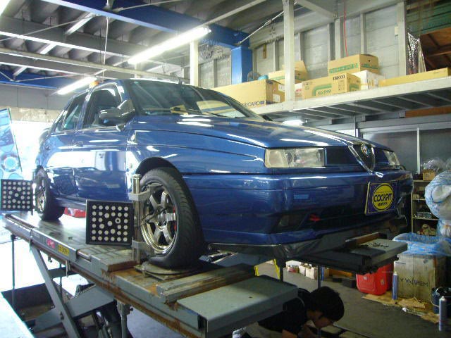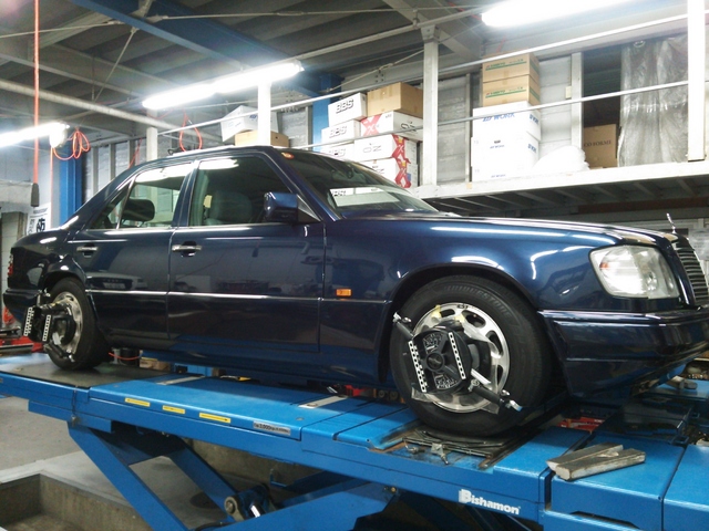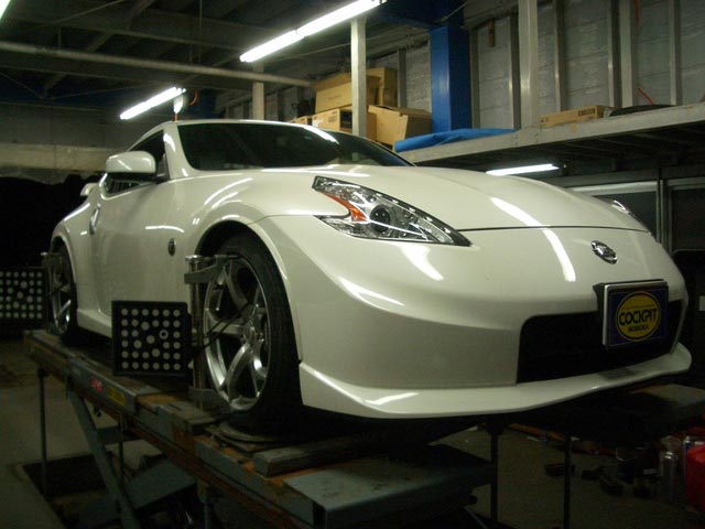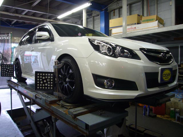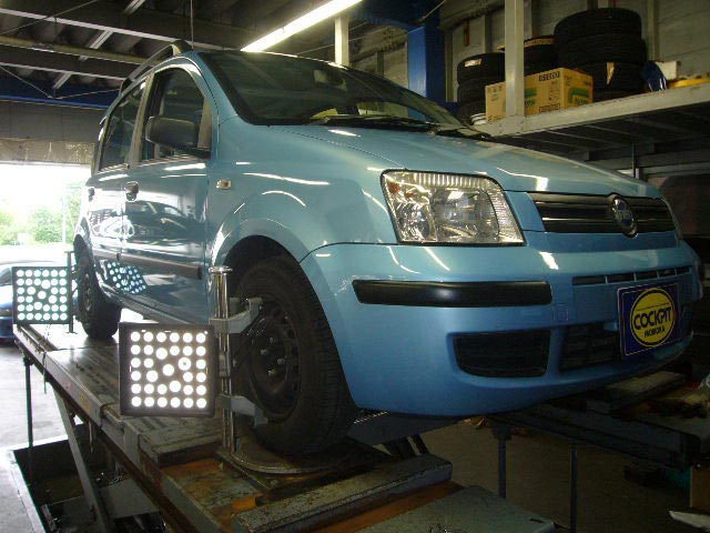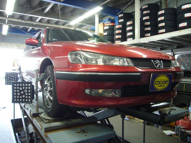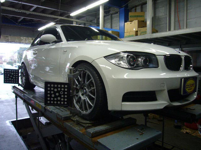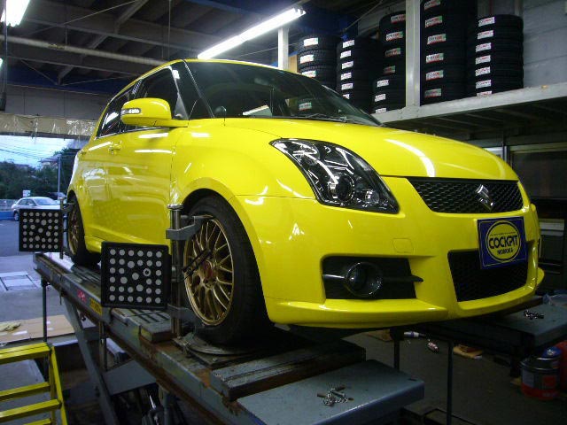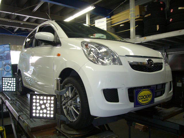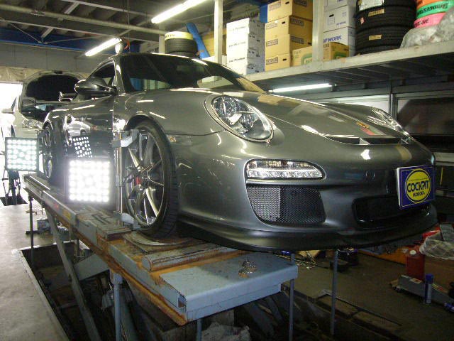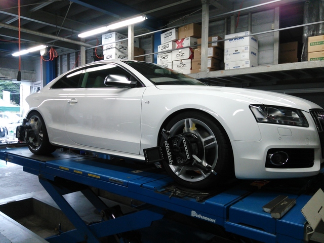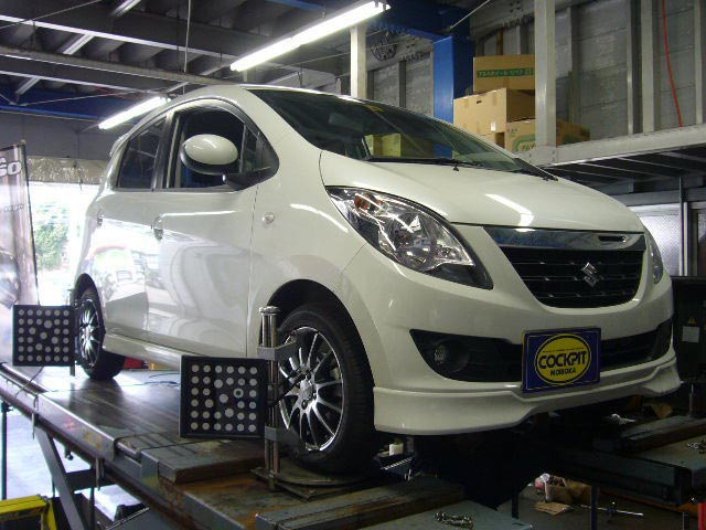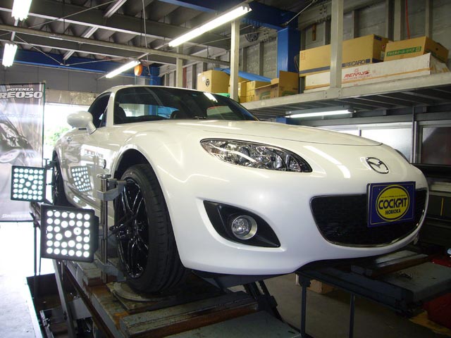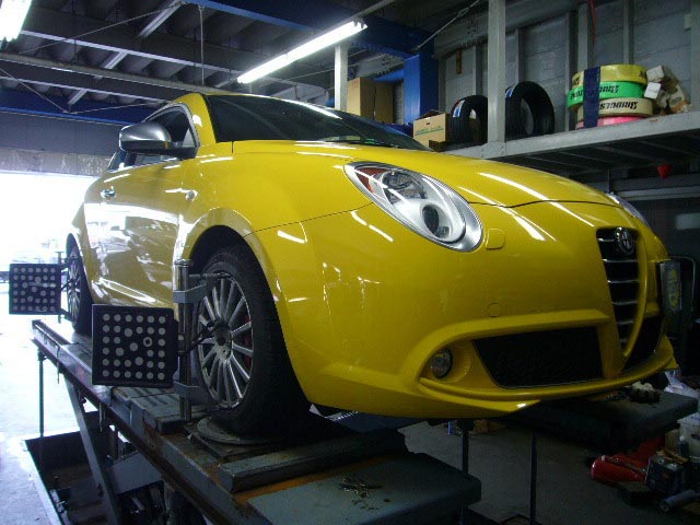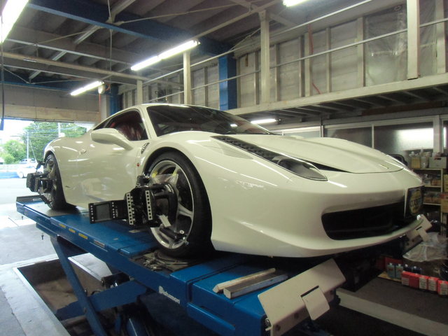 まず、はじめに車輌の状態(ハブベアリング、ボールジョイント類など全般)の点検後、問題がなければ調整作業にはいります。