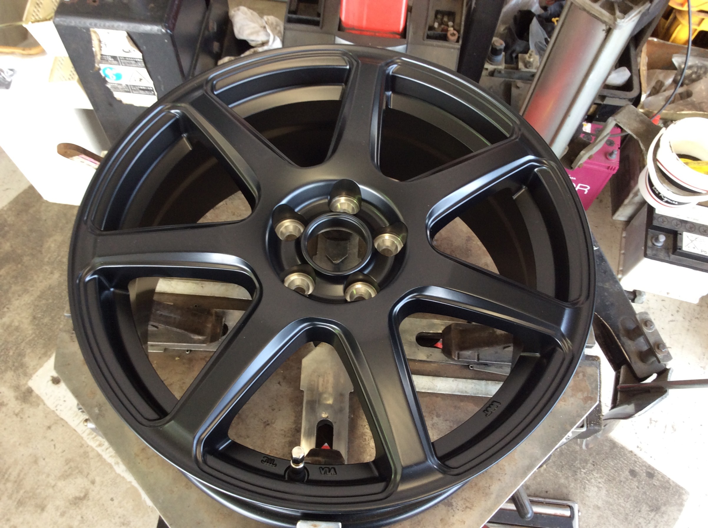 お客様のご指定でこちらのホイール(マットブラック)に純正の夏タイヤを組み込み、純正ホイールにブリザックVRX3を装着します(タイヤ交換予約済み)!