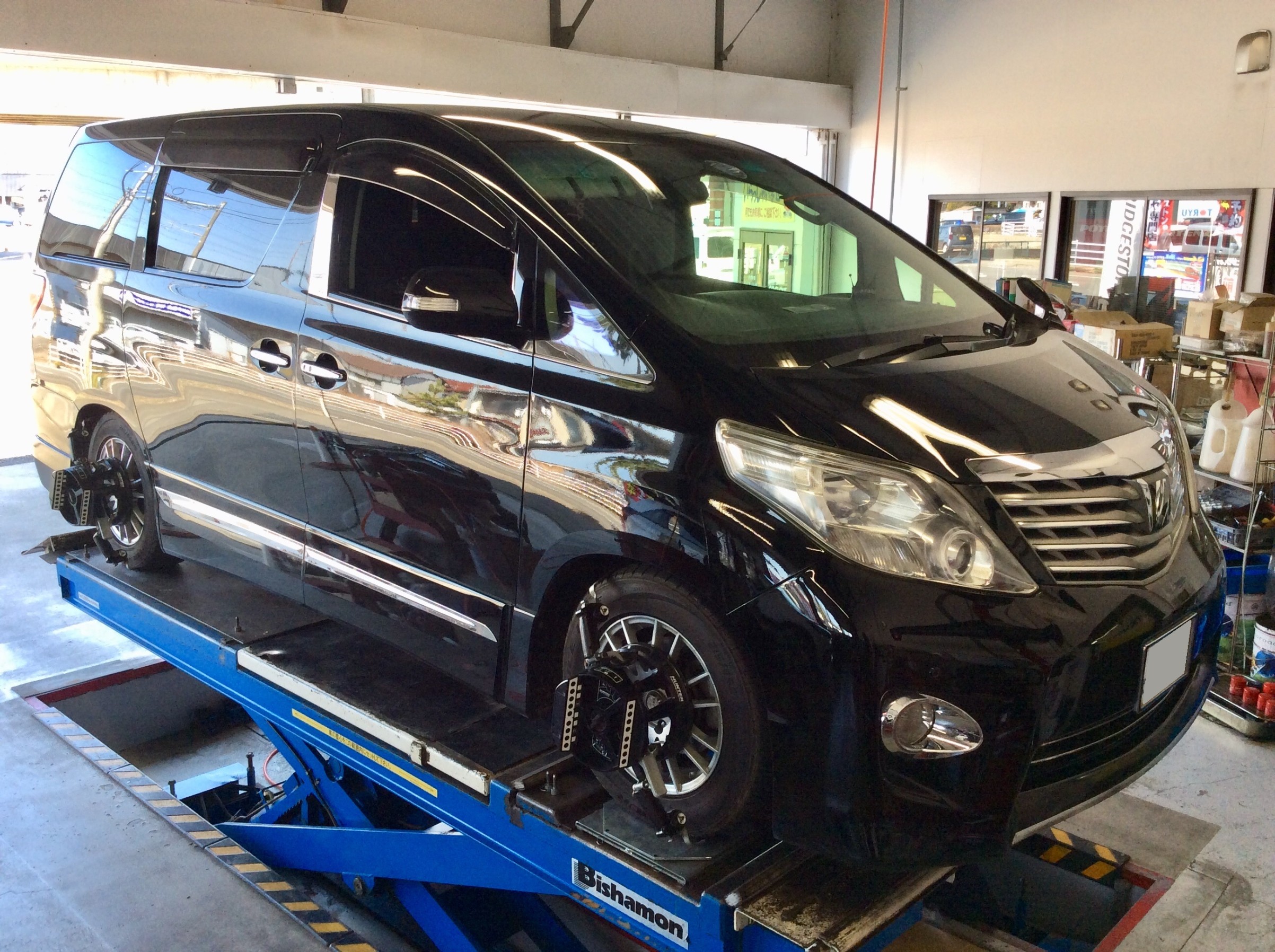 TEIN車高調を取り付けたアルファードの本アライメント調整!ご利用ありがとうございます!
