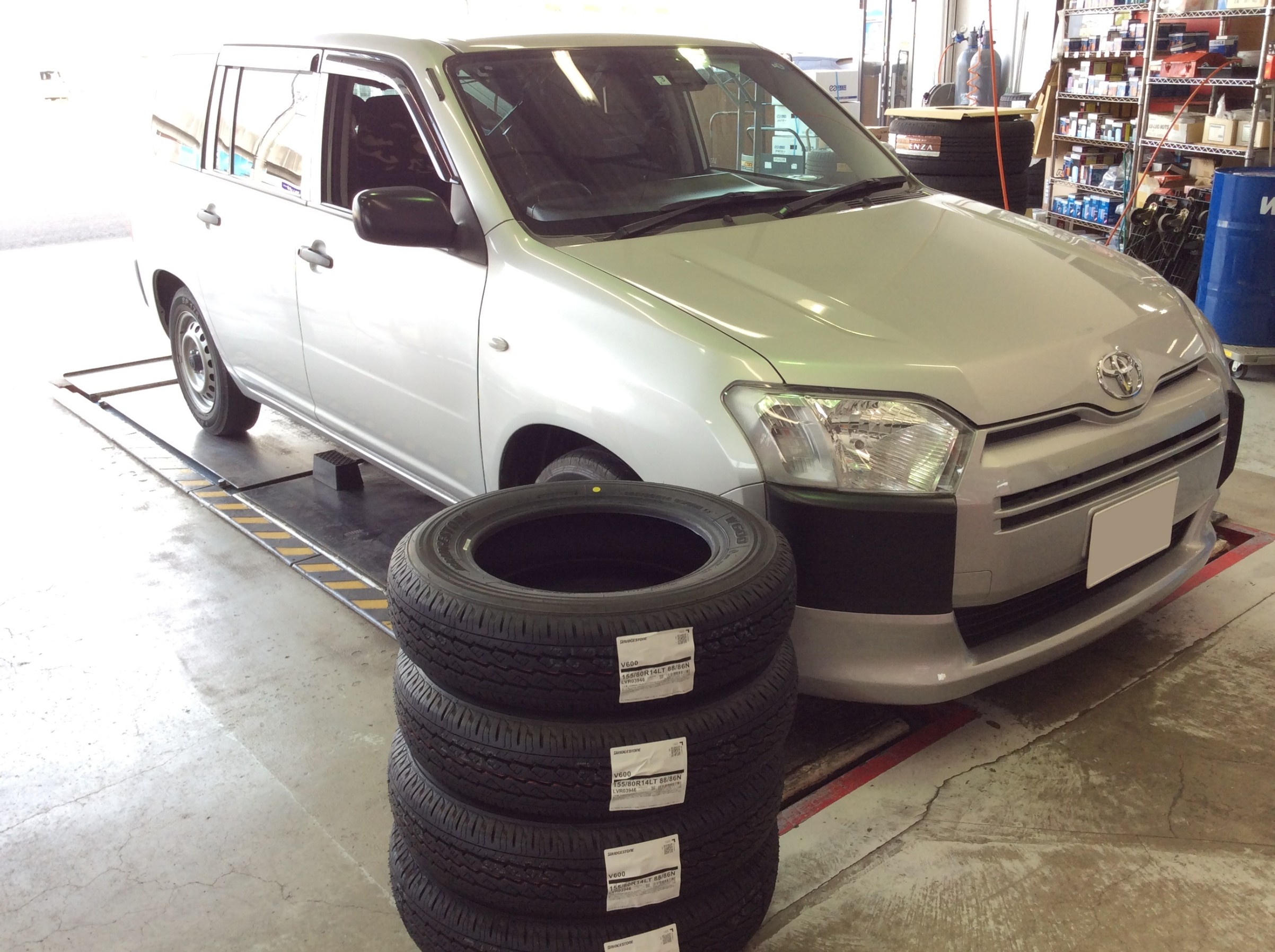 サクシードに、ブリヂストンの商用バン・小型トラック専用スタンダードタイヤのV600を装着!ご利用ありがとうございます!