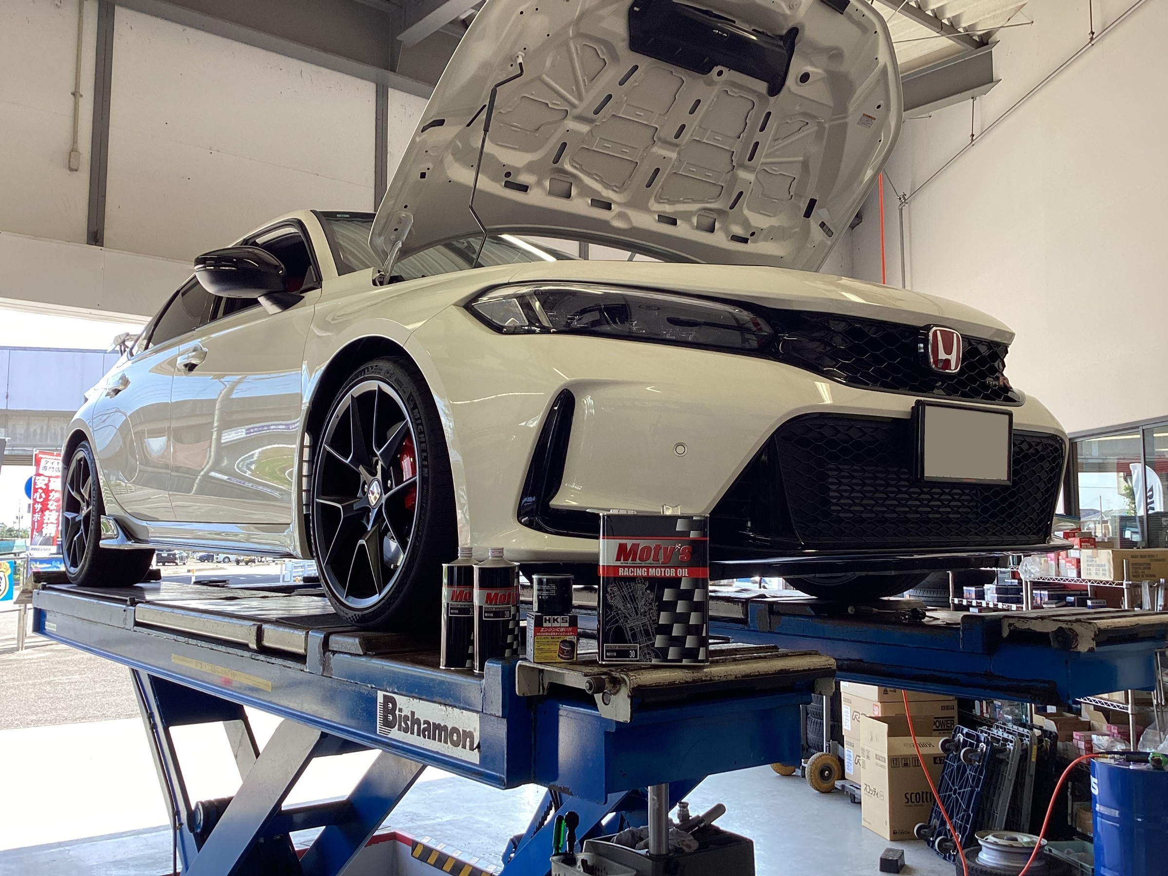 シビックタイプRはエンジンオイル交換です!(^^)! 当店のオススメオイルMoty'sを使用しました!ご利用ありがとうございます!