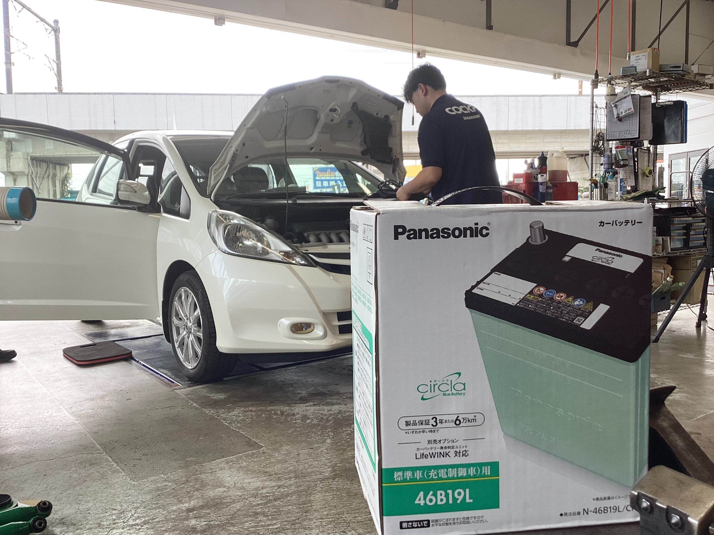 FITのバッテリー交換!Panasonic Circlaを取り付けました。ご利用ありがとうございます!