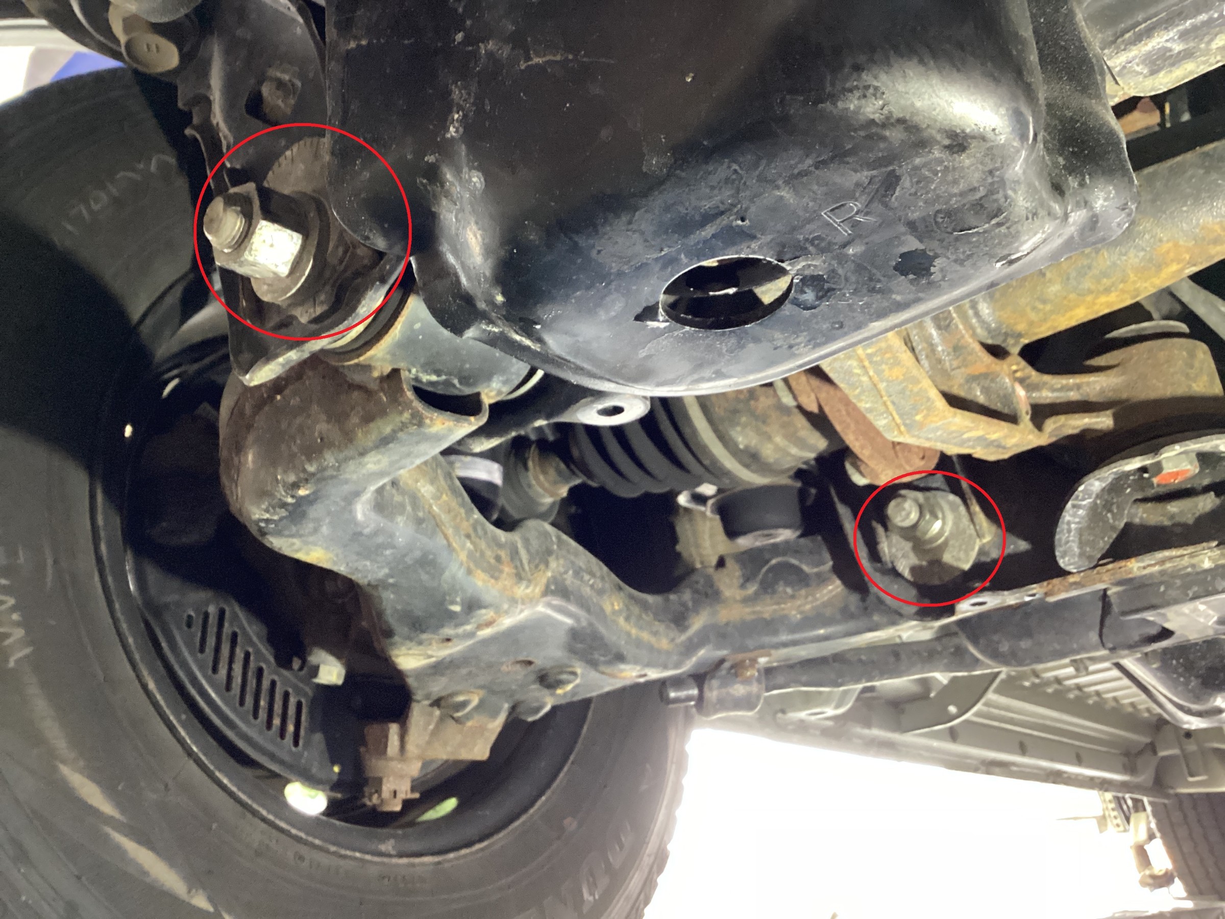 ハイエースの調整箇所はフロントのキャンバー、キャスター、トーの3か所になるので調整はそれなりに大変です!