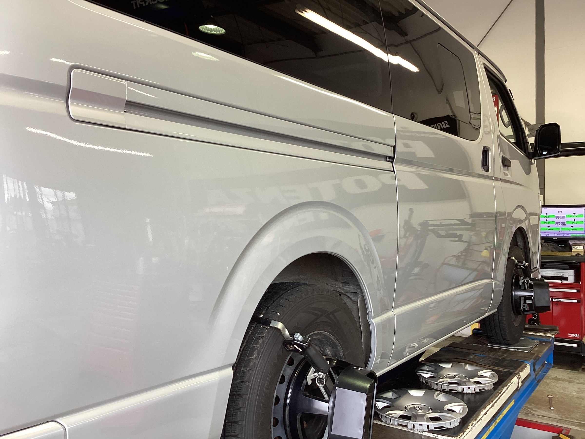 そんなアライメントテスターで測定したハイエースのアライメント作業をご紹介します!