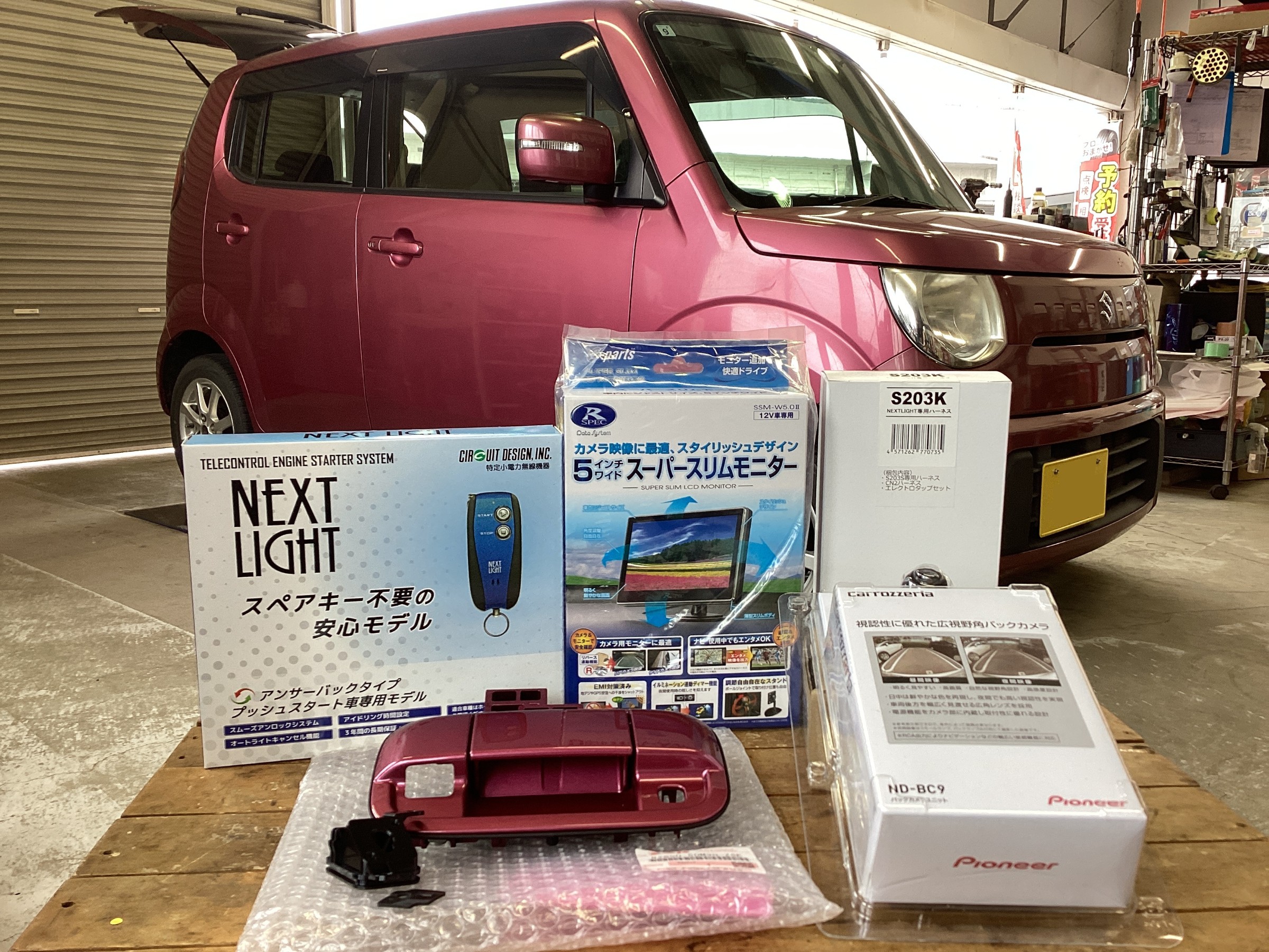 MRワゴンに、サーキットデザインエンジンスターター ESL55、Pioneer製バックカメラ ND-BC9、バックカメラ用モニターにデータシステムスーパースリムモニターSSM-W5.0-2を取り付けます!