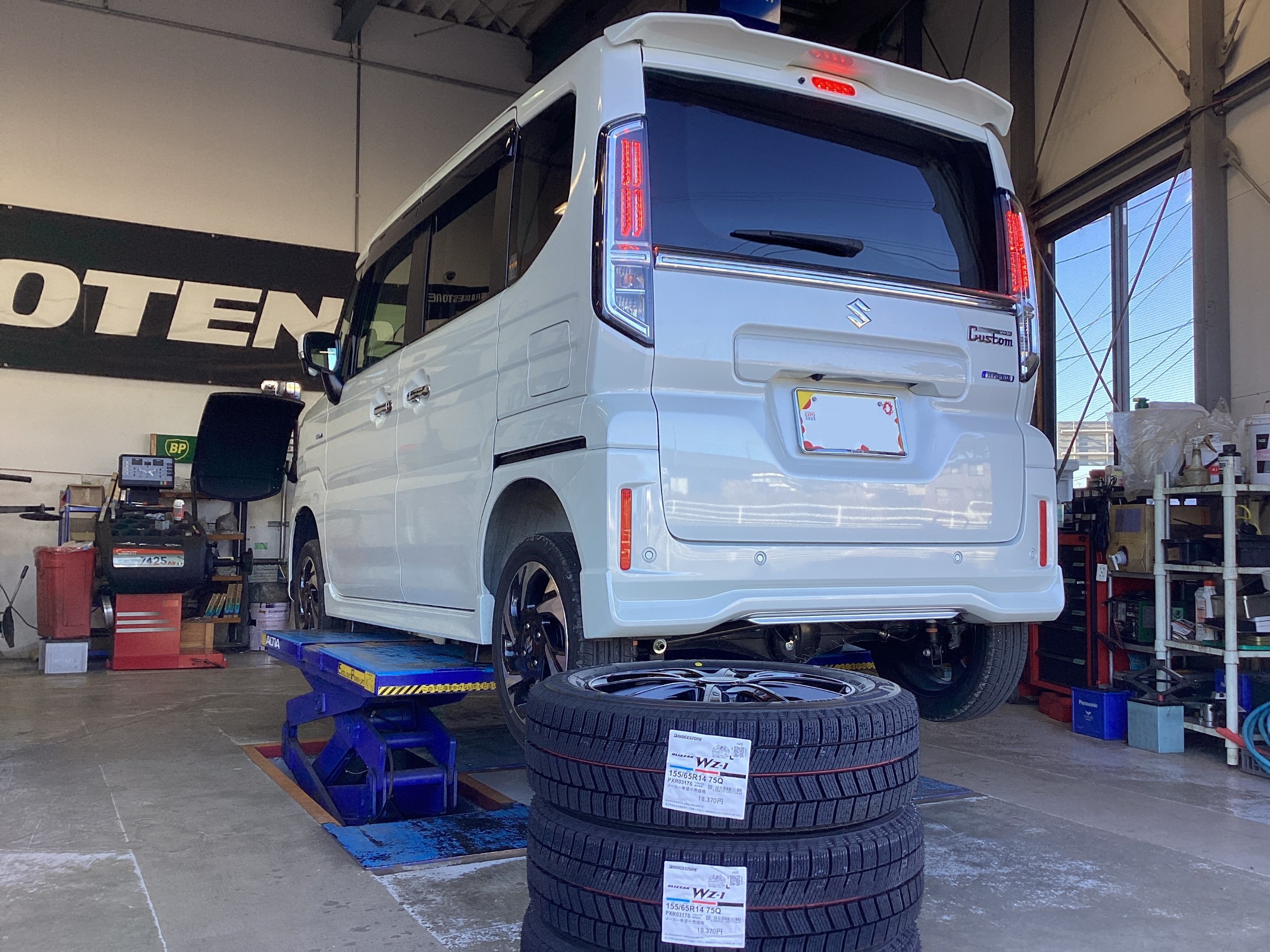 スペーシアカスタムに、新商品のPremiumスタッドレスタイヤ BLIZZAK WZ-1を装着!ご利用いただきありがとうございます!