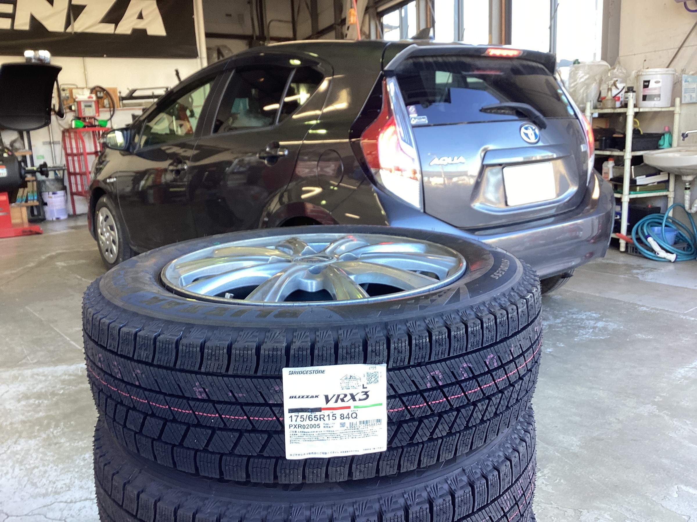 アクアに、MAJORスタッドレスタイヤのBLIZZAK VRX3を装着!ご利用いただきありがとうございます!