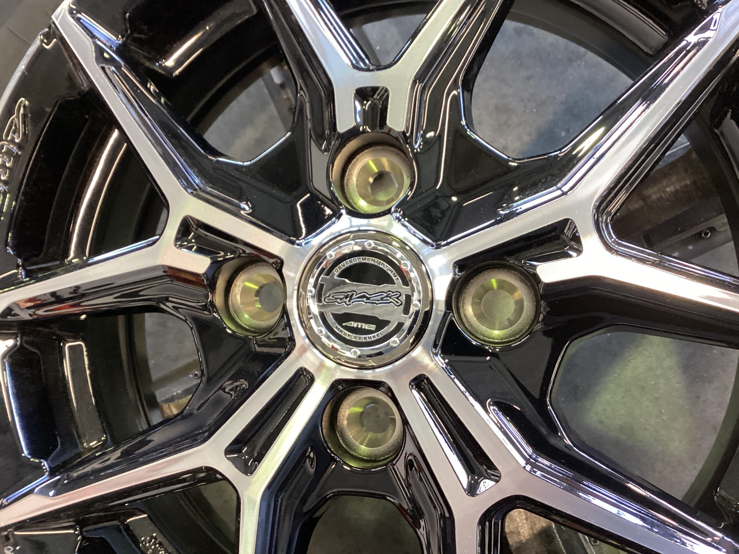 こちらのアルミホイールSMACK+EK M1ですが、ENKEI製で軽量、しかも洗いやすいデザインなのでメンテナンスが楽!オススメなホイールですよ!