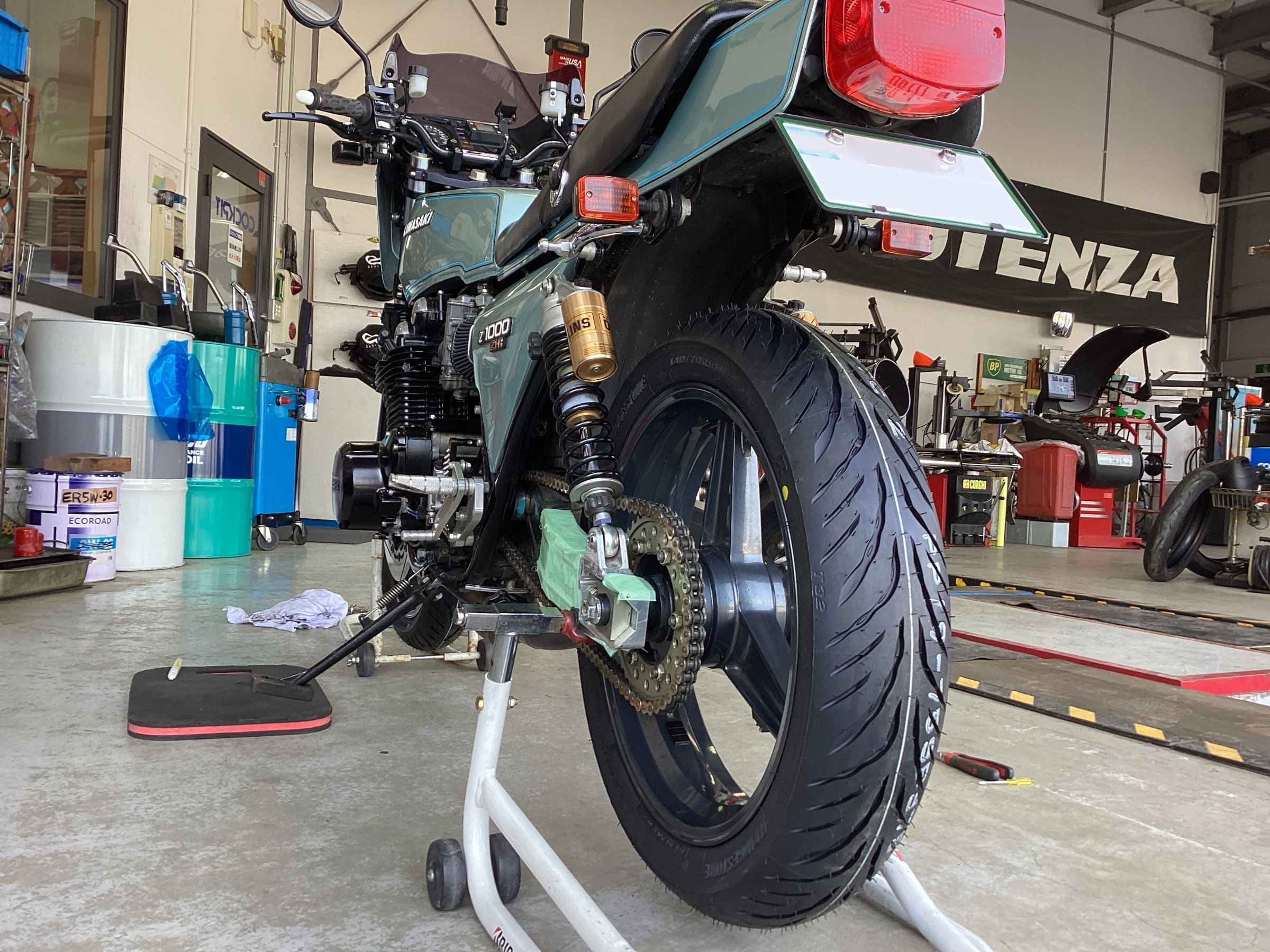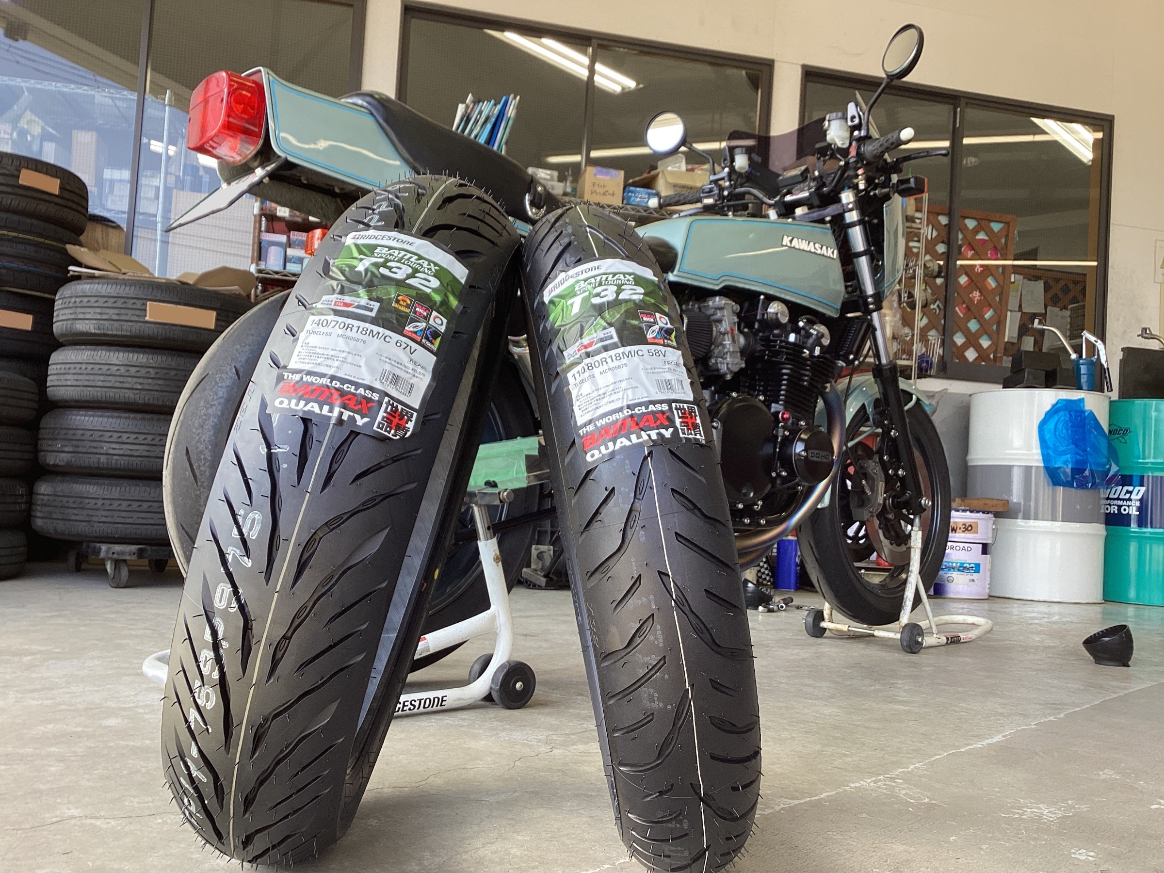 貴重なバイクのZ1-Rに、BATTLAX SPORT TOURING T32を装着!フルカスタムされてるので緊張しますがなんとか交換しました!