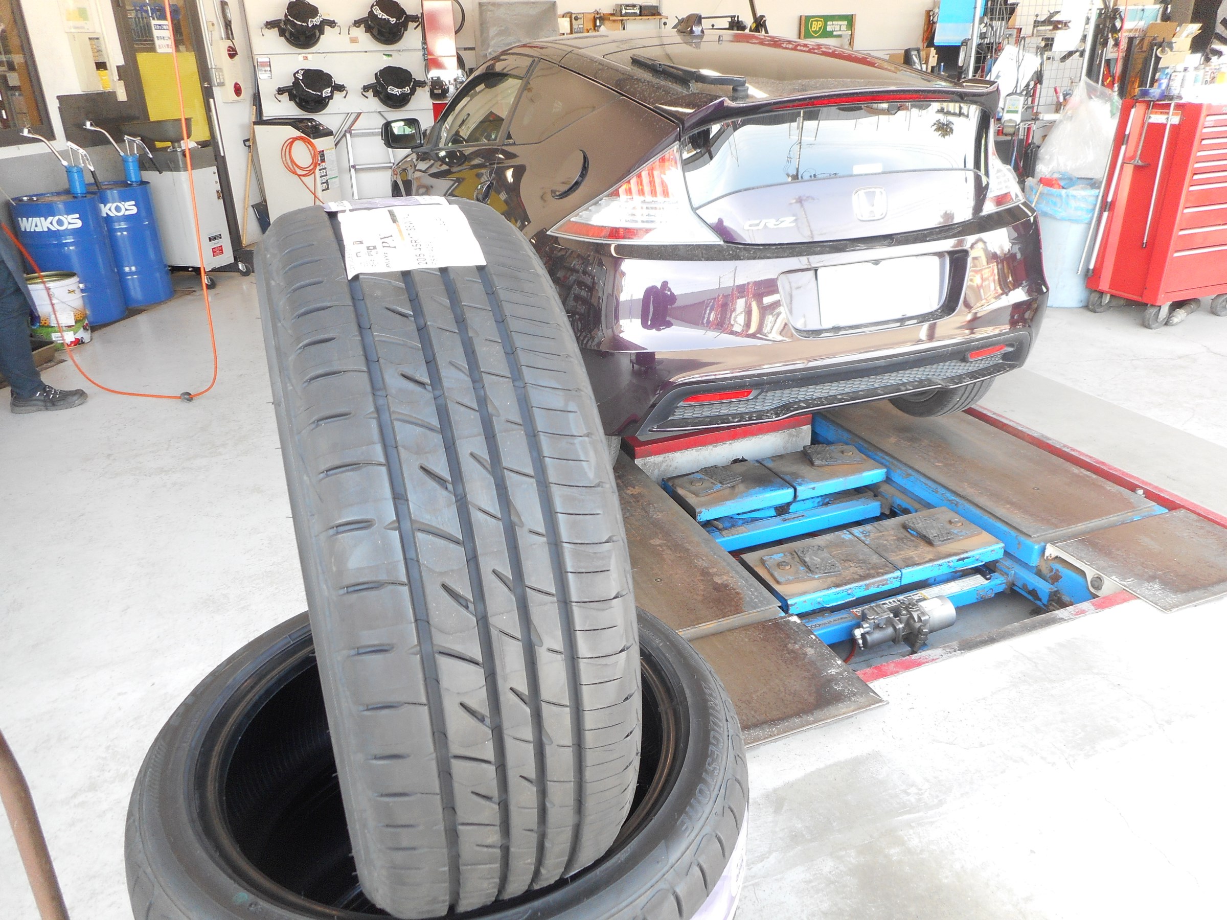 本日の作業1台目、CR-Zのタイヤ交換です。